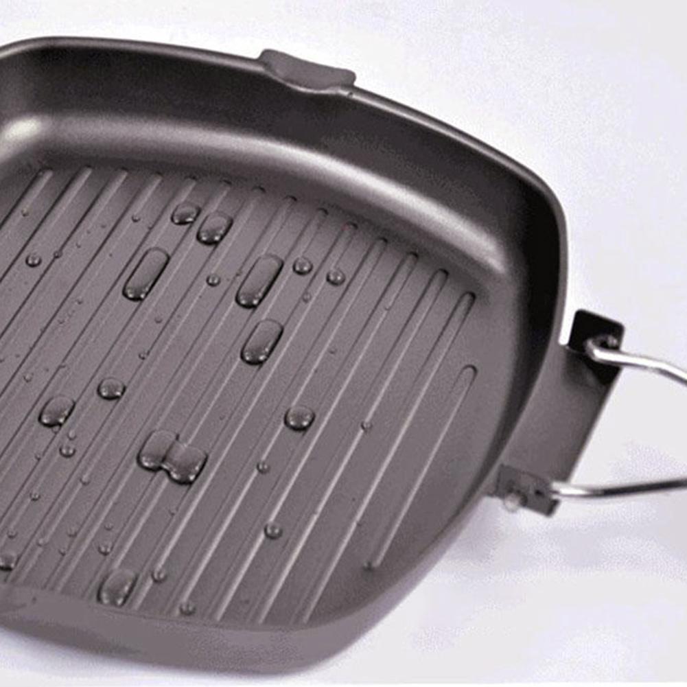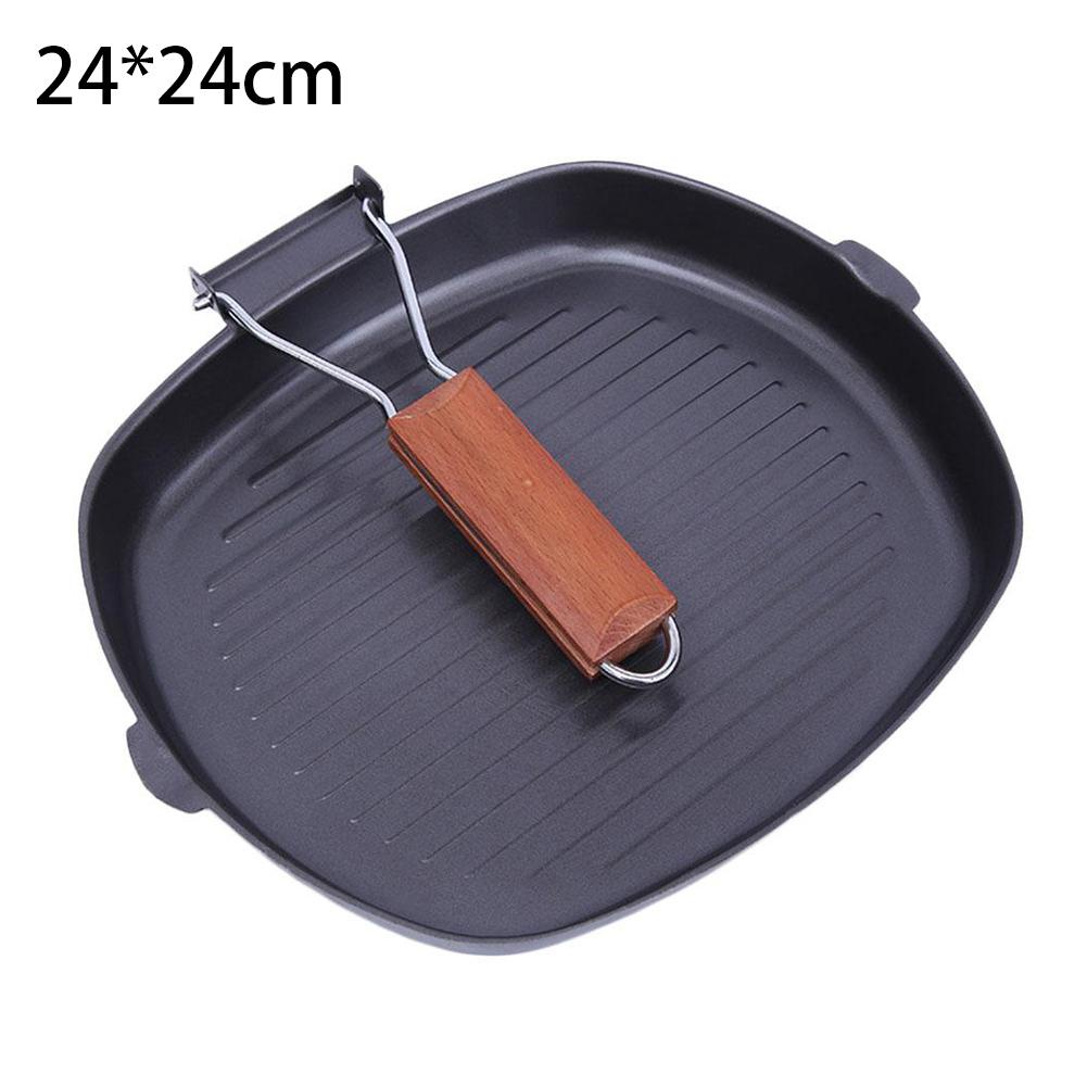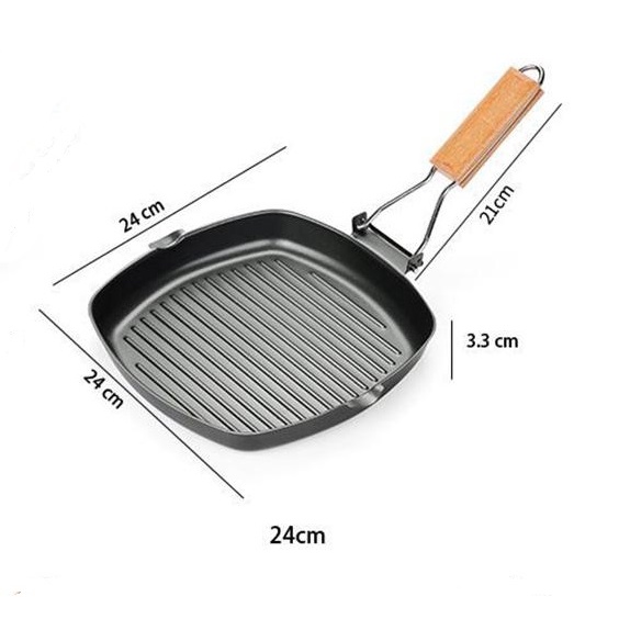 Kuali nonstick 24cm Griddle Steak Square Frying with Folding Wooden Handles Grill Plate By Bushcraft Malaya