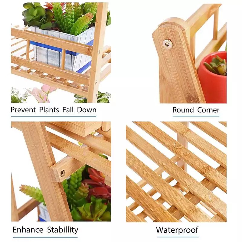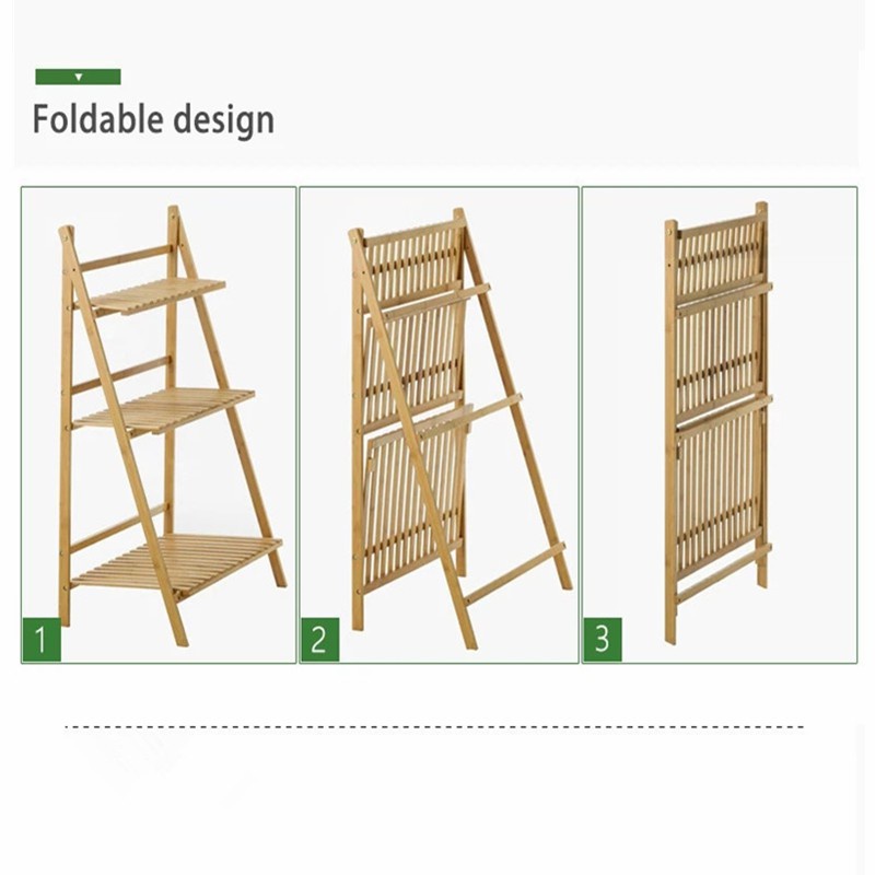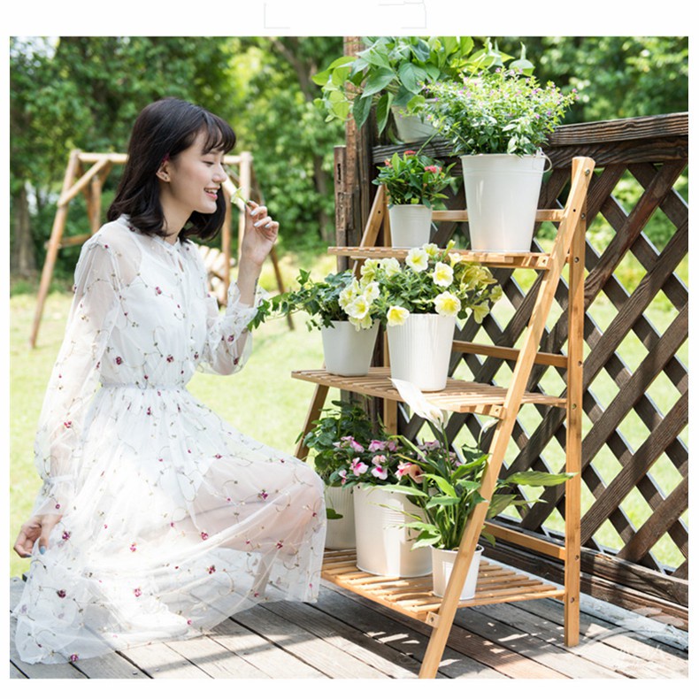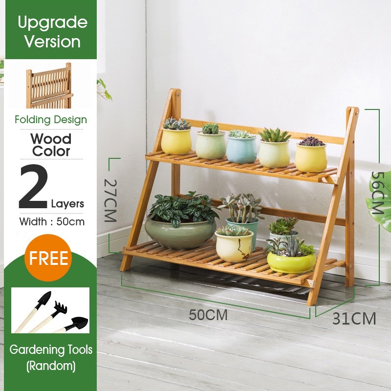 Johor Seller || In Stock Household Foldable Balcony Stand three layer wooden balcony plant flower stand