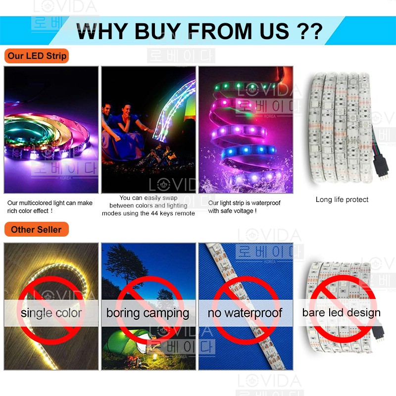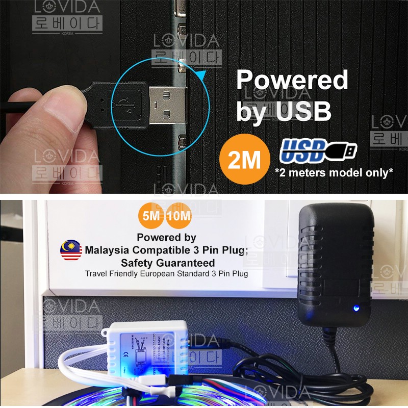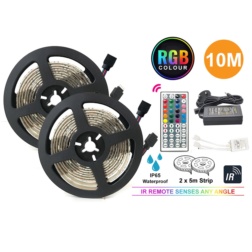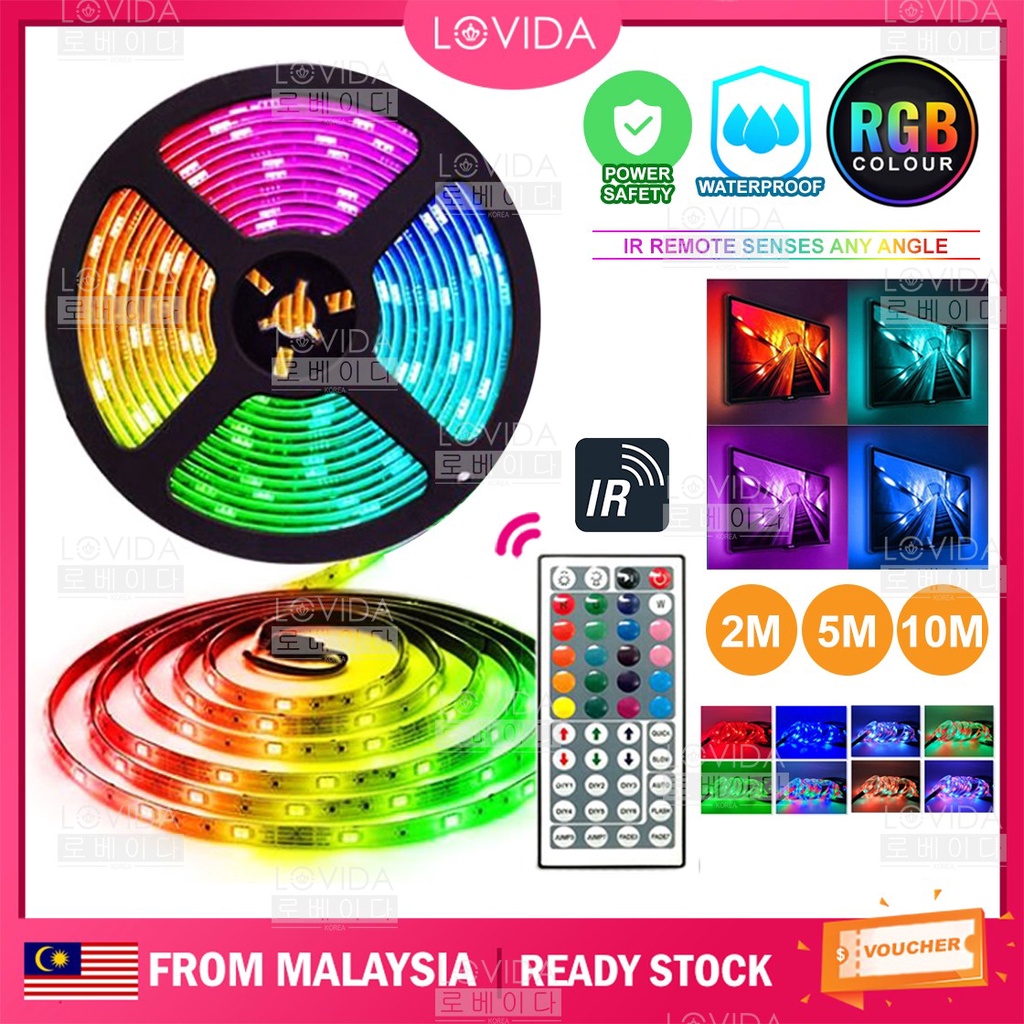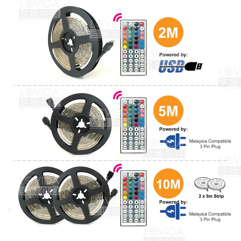 2M / 5M / 10M Waterproof LED Strip RGB Colour USB 3 Pin Plug Powered wt 44 Key Remote TV Backlight / Lampu Kelip Liplap