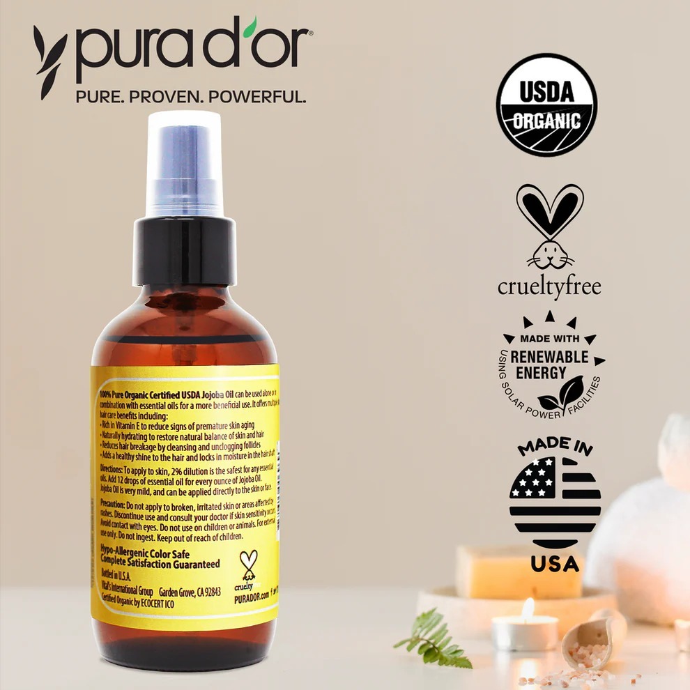 PURA D’OR Organic Jojoba Oil - 100% Pure and Natural 118ml