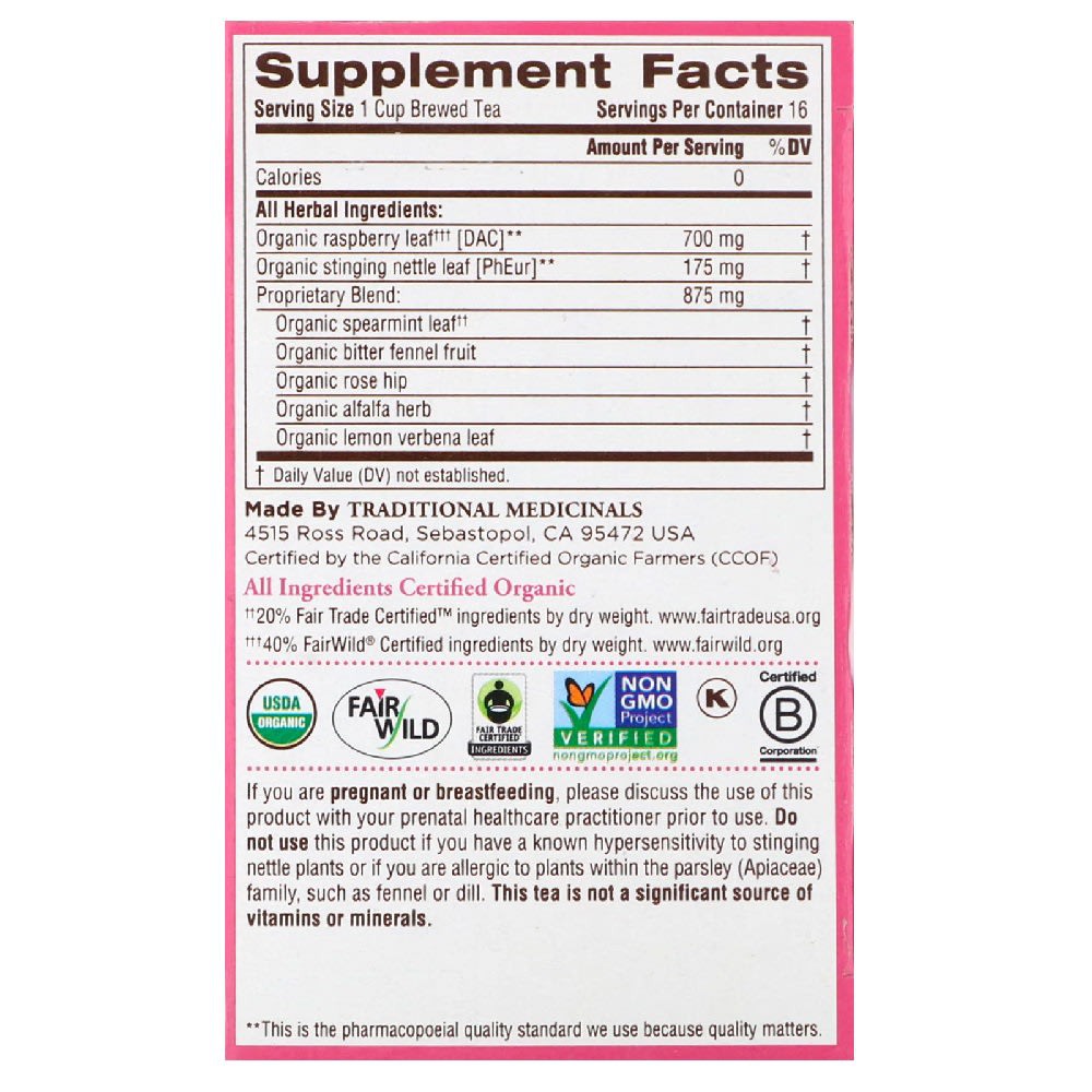 Traditional Medicinals, Organic Pregnancy Tea, Raspberry Leaf, Caffeine Free, 16 Wrapped Tea Bags (28 g)