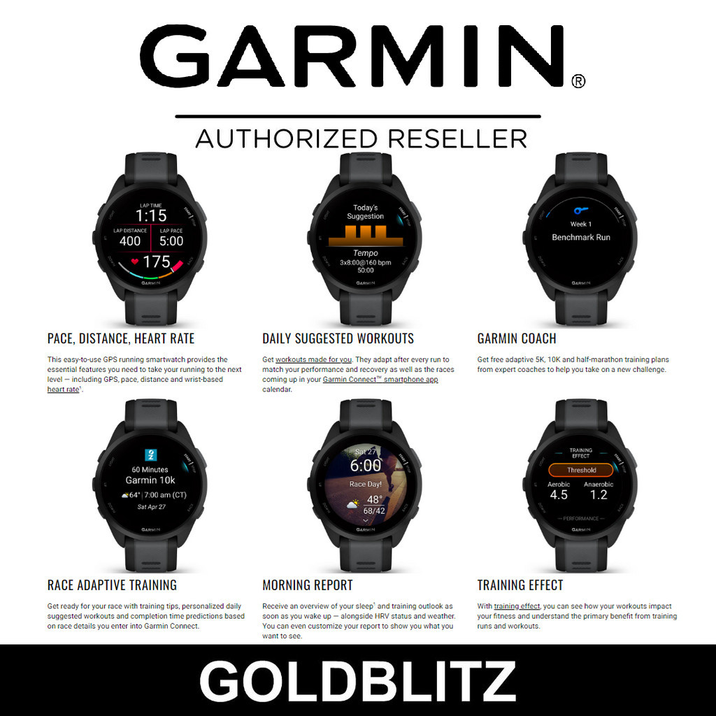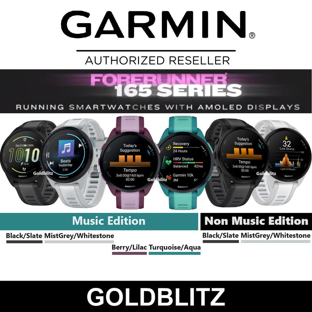 Garmin Forerunner 165 / 165 Music 1.2" Amoled GPS Running Smartwatch FR165 Multisport Smart Watch Run Sport Fitness