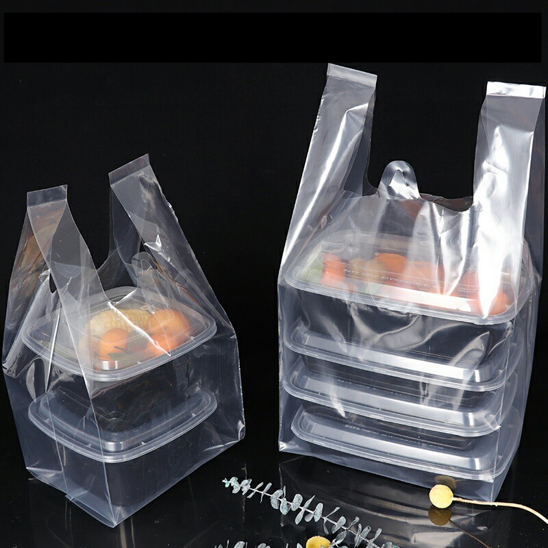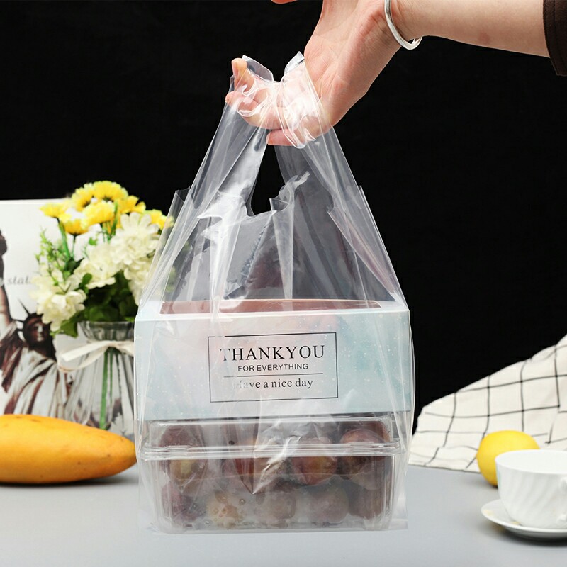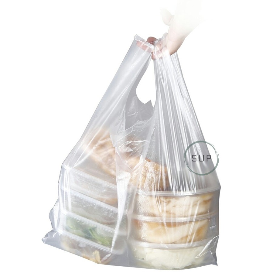PE Singlet Plastic Bag / Transparent Shoulder Bag / Plastic Bag Half Clear PE With Handle