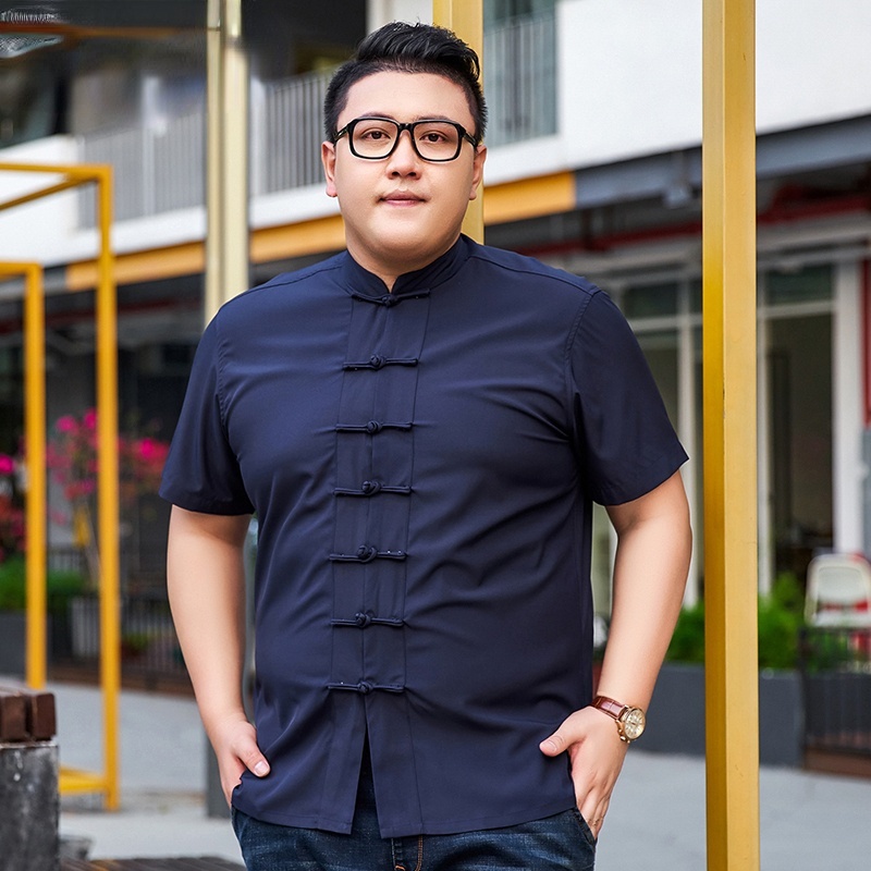 Large Size Short-Sleeved Shirt Men's Breathable Loose Plus Tang Suit Top