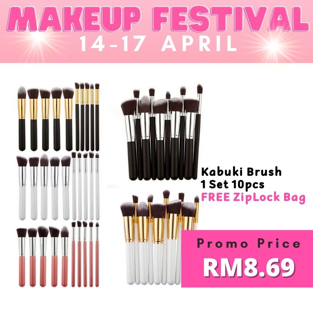 [ HOT ITEM ] | 10 Pcs PREMIUM Multi Function Makeup Kabuki Brush Set BIG SIZE UPGRADED SIZE BATANG KAYU WOOD HANDLE