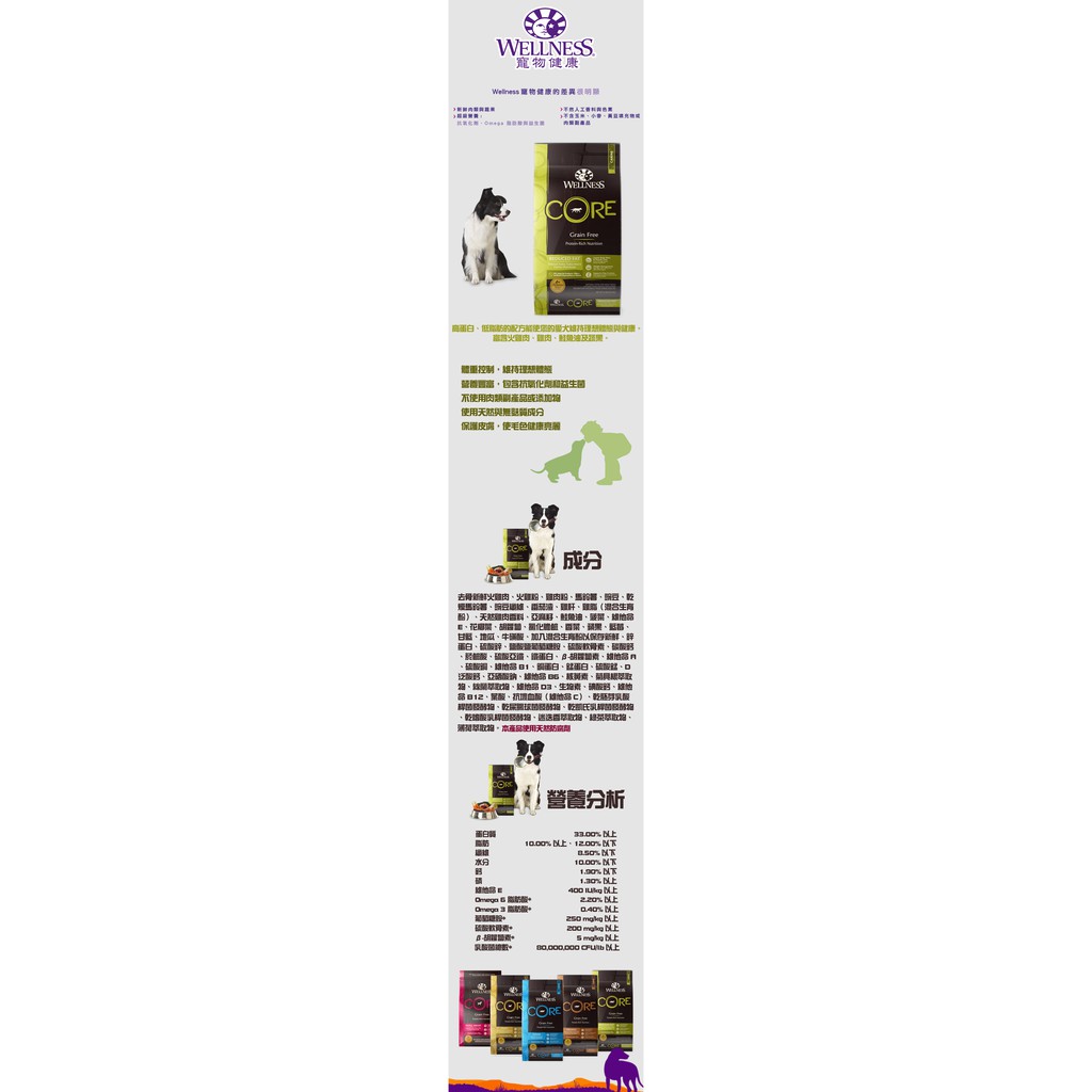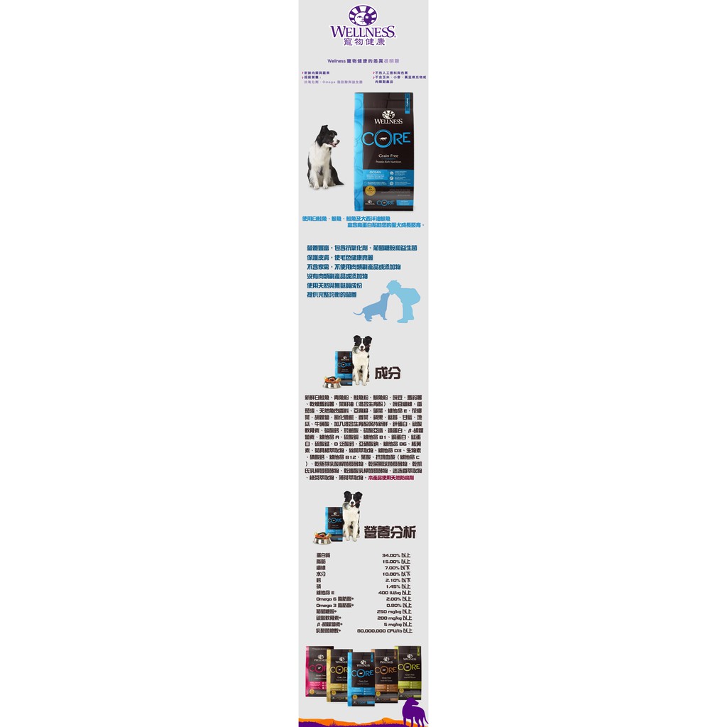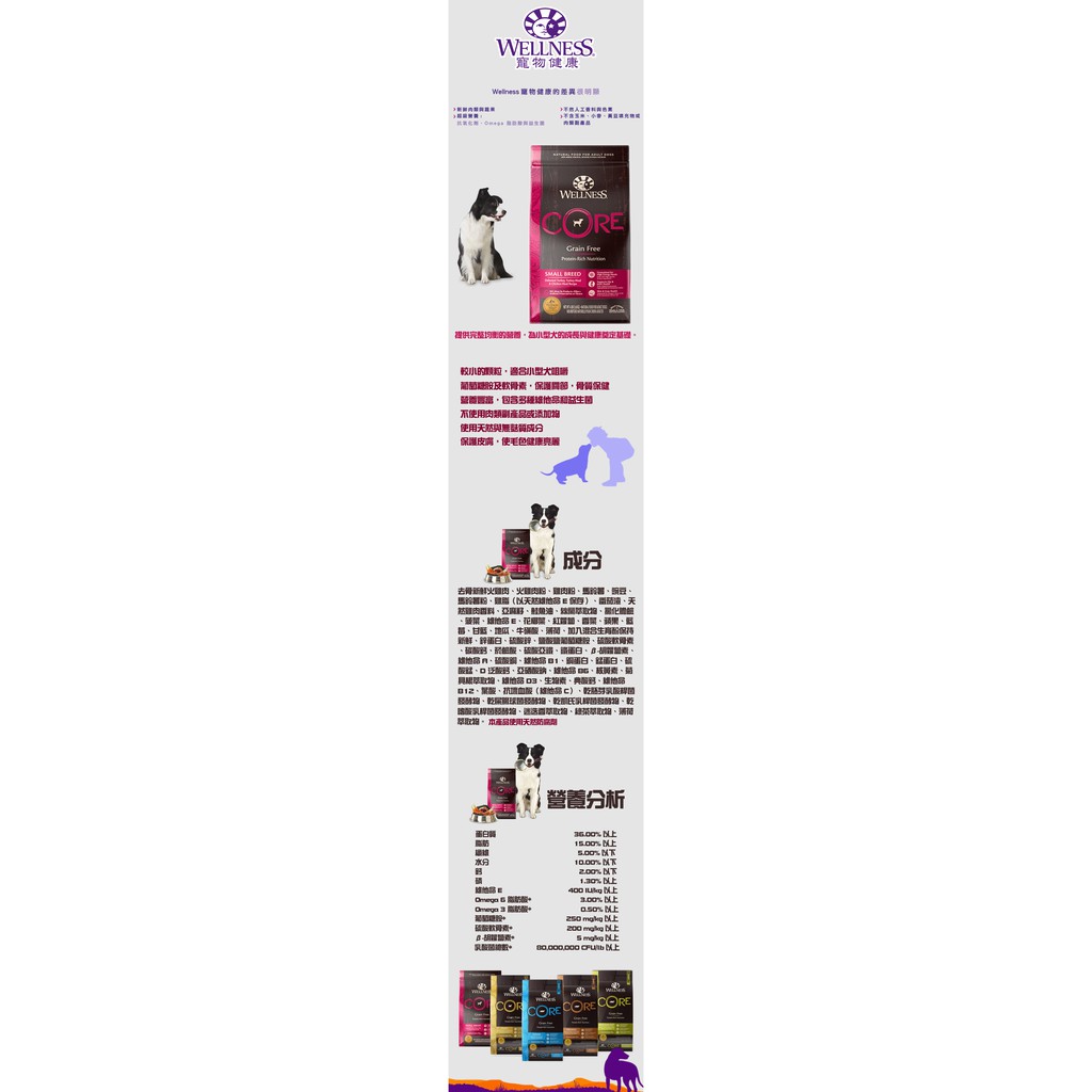 WELLNESS CORE Grain Free Dog Food 4lbs (1.8kg)
