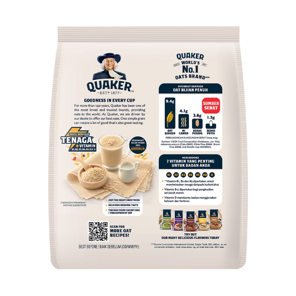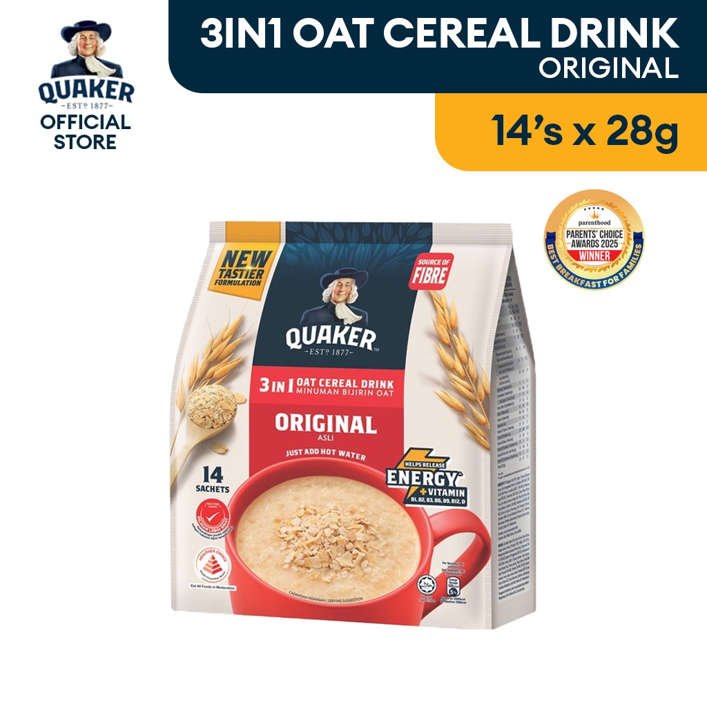 Quaker Oat Cereal Drink 3in1 Original 14's x 28g / Quaker Minuman Bijirin Oat 3 dalam 1 Asli 14 x 28g