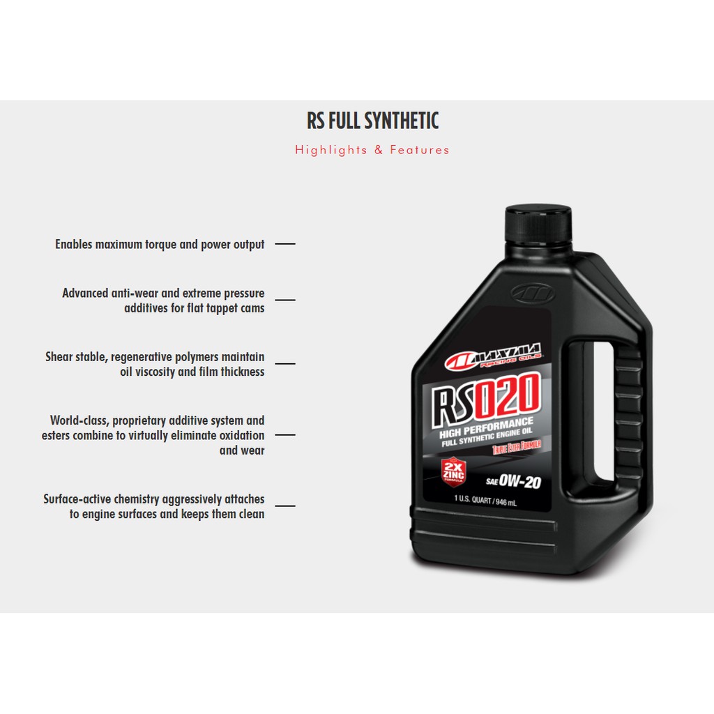 MAXIMA RACING OILS CAR ENGINE OIL - RS020 FULLY SYNTHETIC 0W20