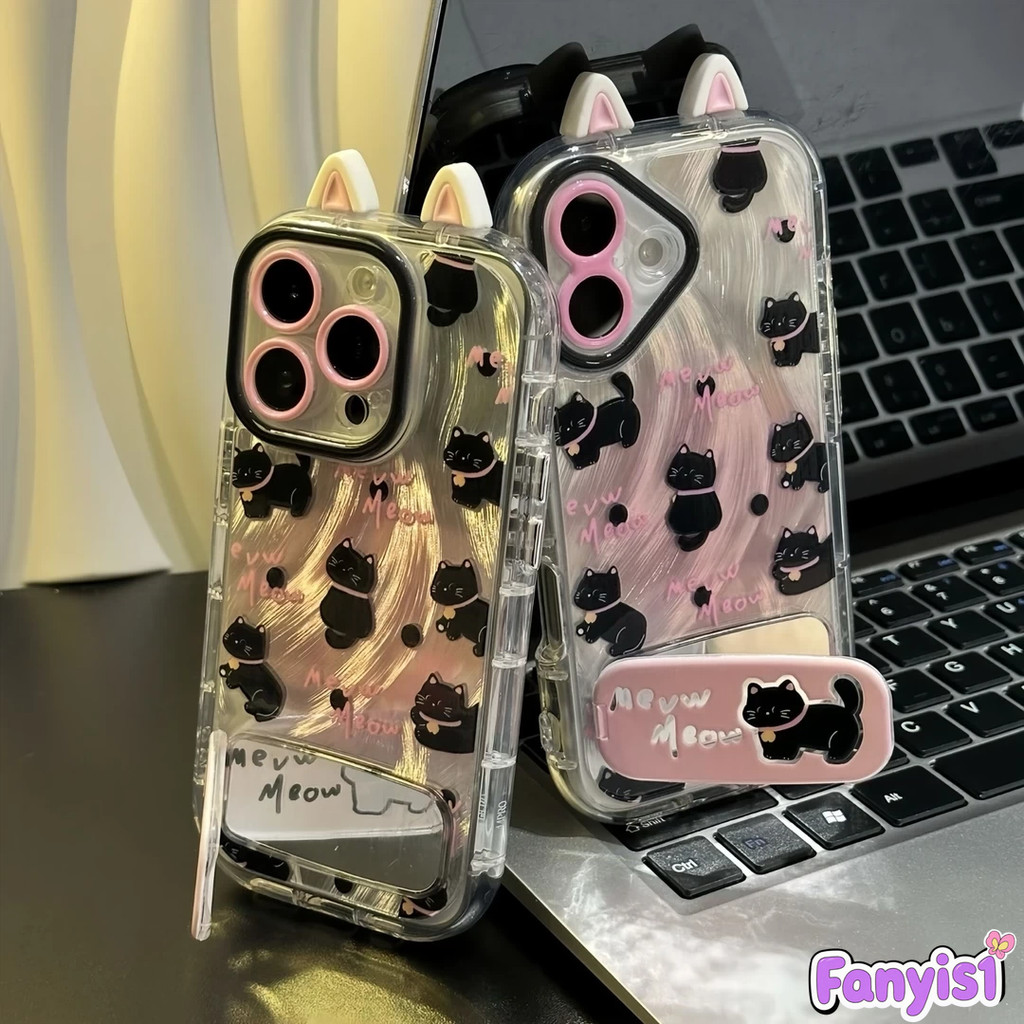 Mirror Case For Infinix Smart 9 8 10 7 6 5 Hot 40i 30i Note 30 40 Tecno Spark 20C 10C Go 2024 2023 Hot 20 11 10 9 Play Ins Fashion Kitty Mirror Bracket Protective Cover