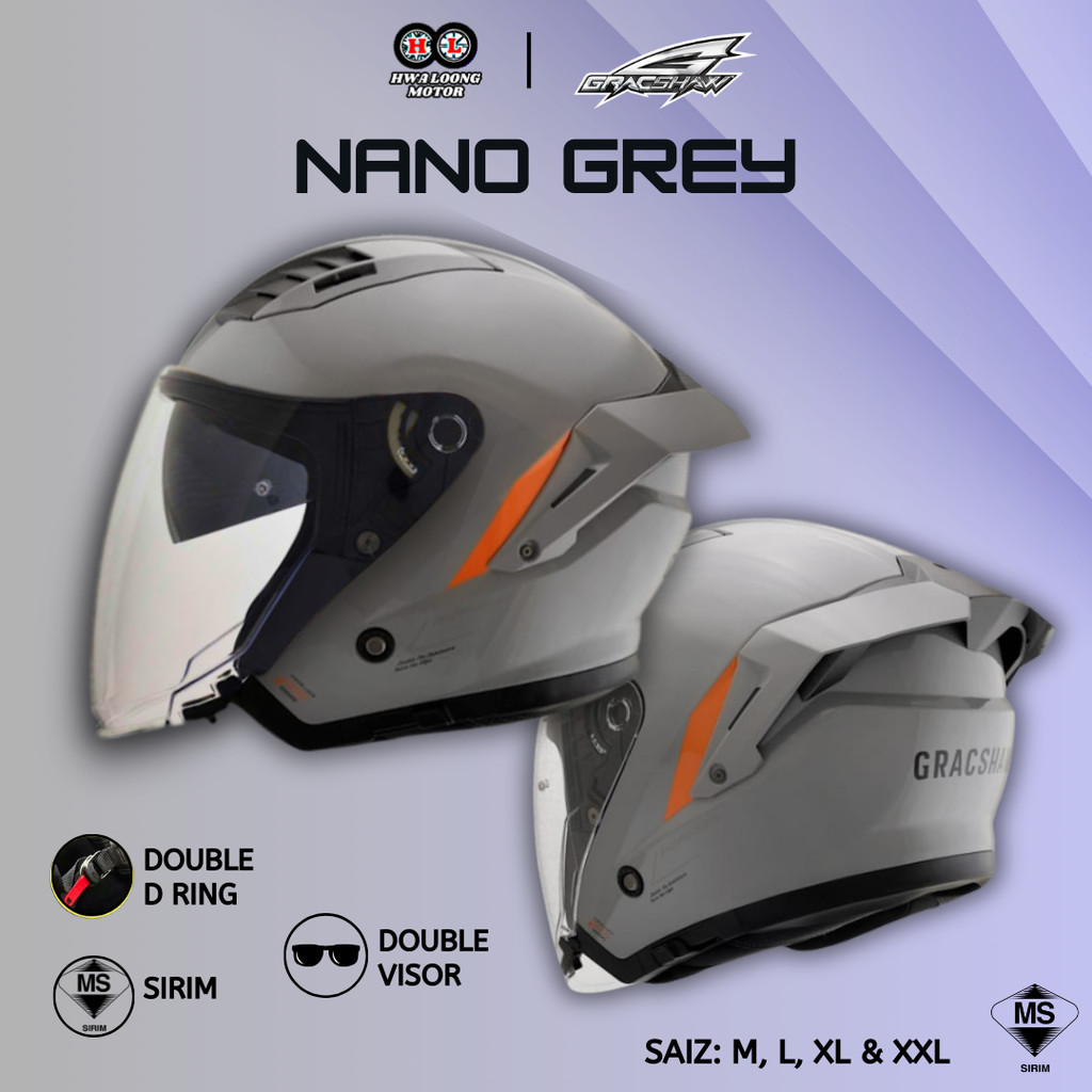 New Arrival GRACSHAW GLAIVE G565 PLAIN EDITION HELMET ORIGINAL OPEN FACE DOUBLE VISOR D RING HELMET (SIRIM APPROVED)
