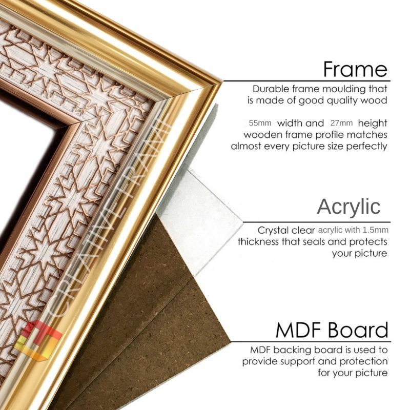 CREATIVE Photo Frame | Golden Frame With Pattern Liner [ Agong / Sultan & Permaisuri Portrait ]
