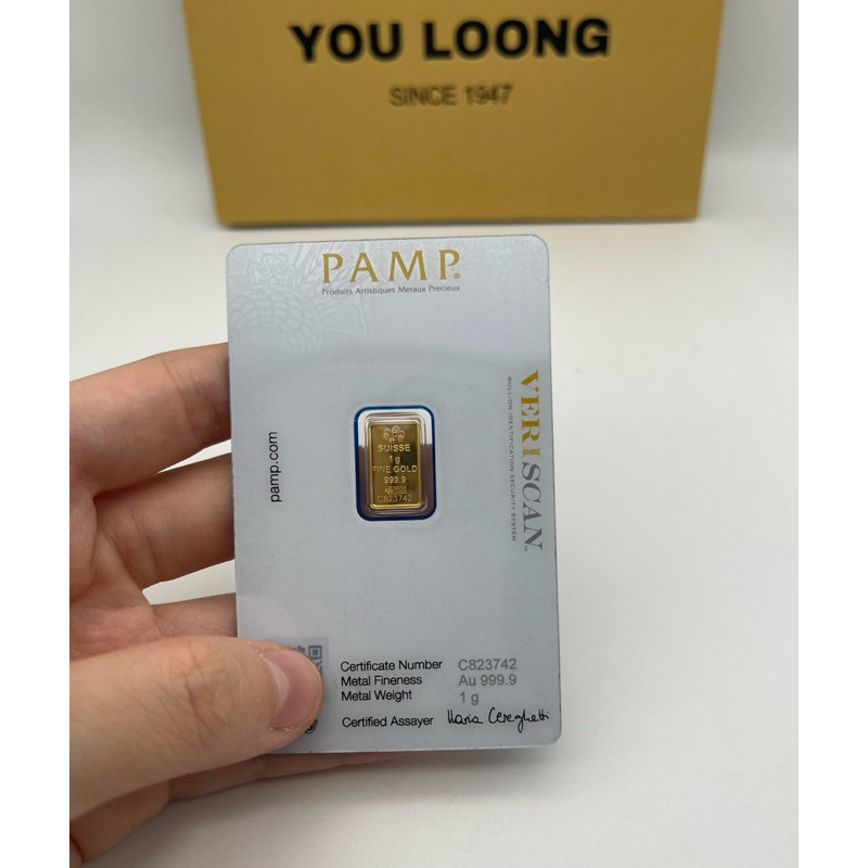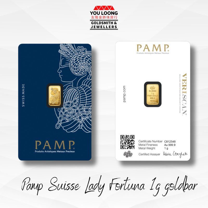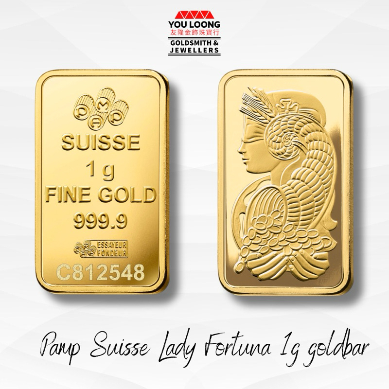 Youloong Suisse Pamp 1gram(1g) Minted Gold bar 999.9GOLD(Lady Fortuna)