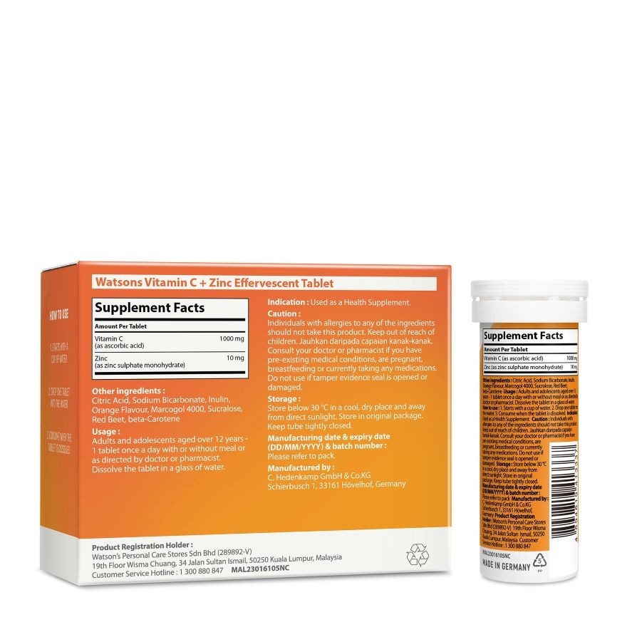 WATSONS Effervescent Vitamin C + Zinc 3 x 10's