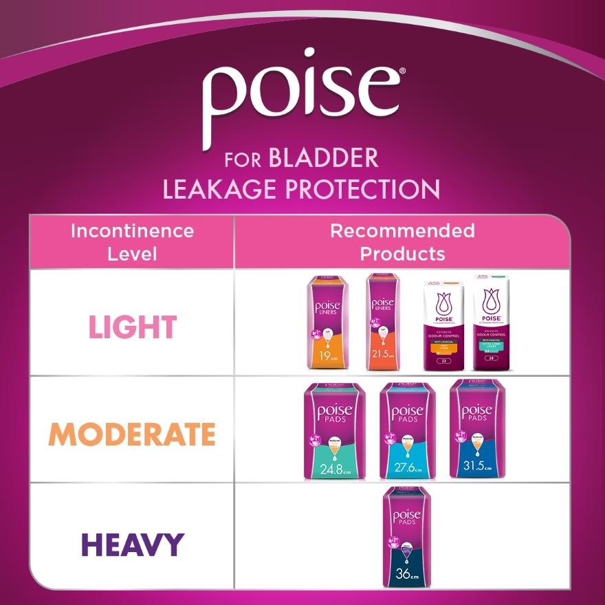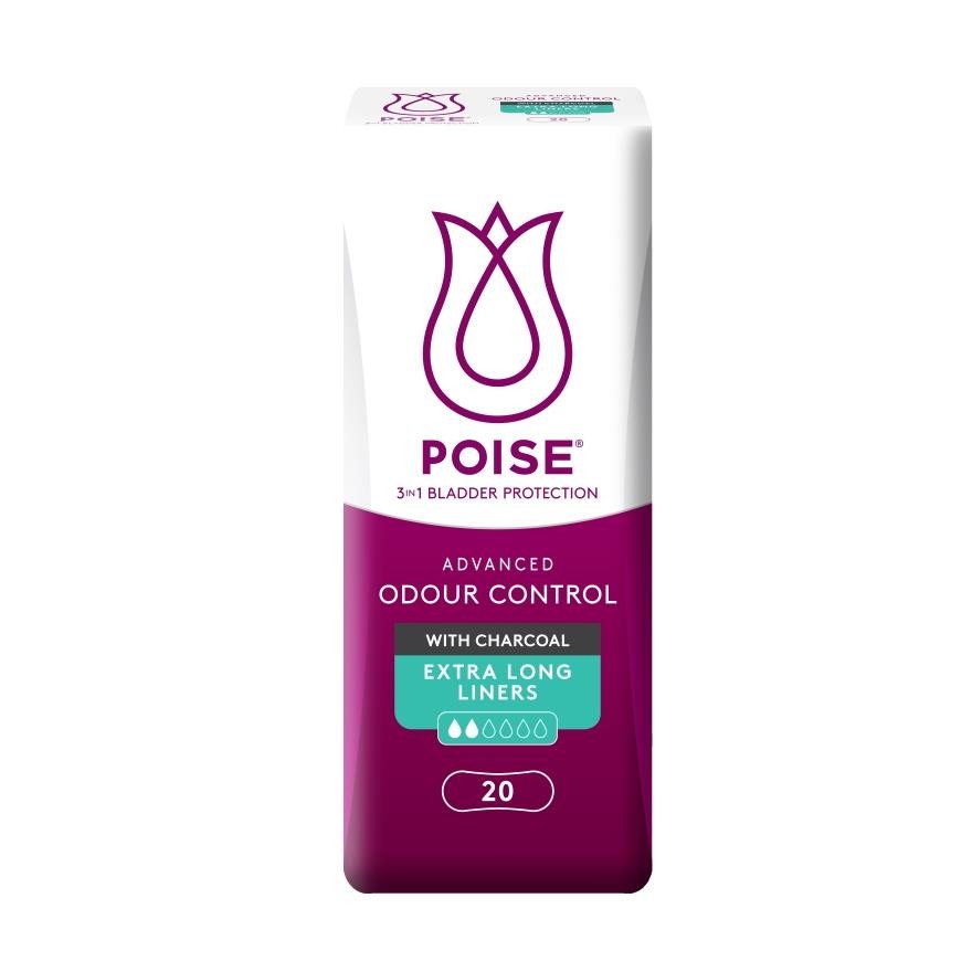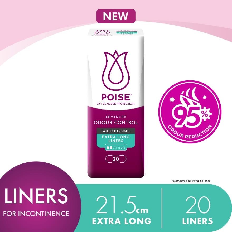 POISE Liners Incontinence Charcoal Extra Long 21.5cm 20s - Light Bladder/Urine Leakage Protection