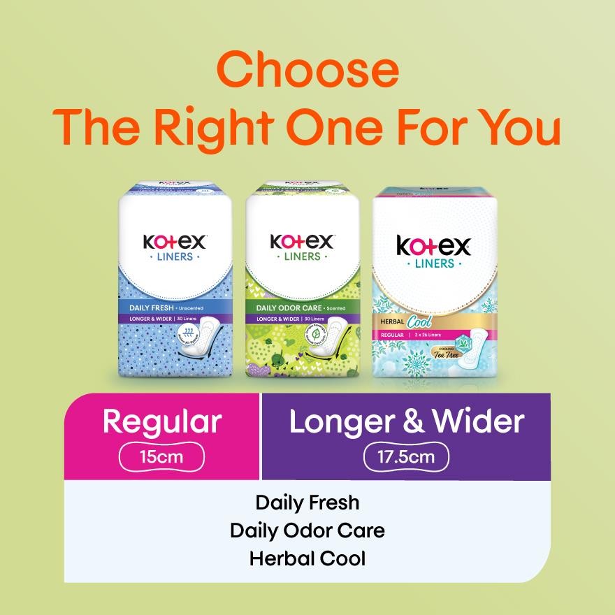 KOTEX Longer & Wider Scented Pantyliner 17.5cm (30s x 3 Packs) - Odor Care with Daun Sirih Extract Liners