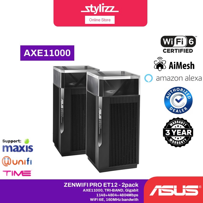ASUS ZENWIFI PRO ET12 AXE11000 HIGH PERFORMANCE TRI-BAND MESH WIFI 6E SYSTEM - BLACK(2PACK)