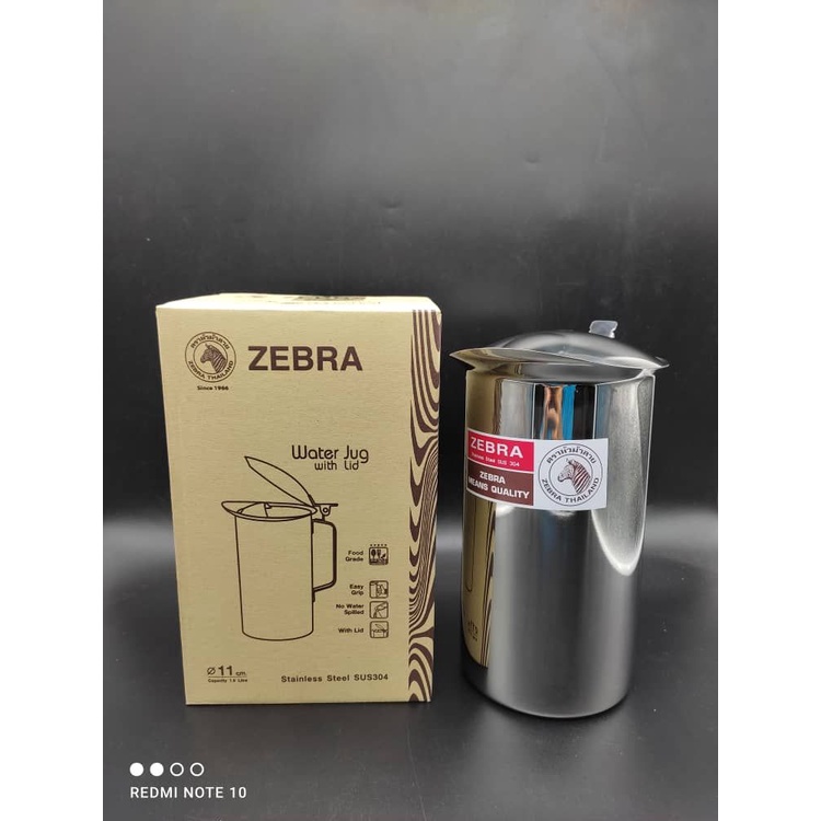 11CM 1900CC ZEBRA S/STEEL WATER JUG W/LID