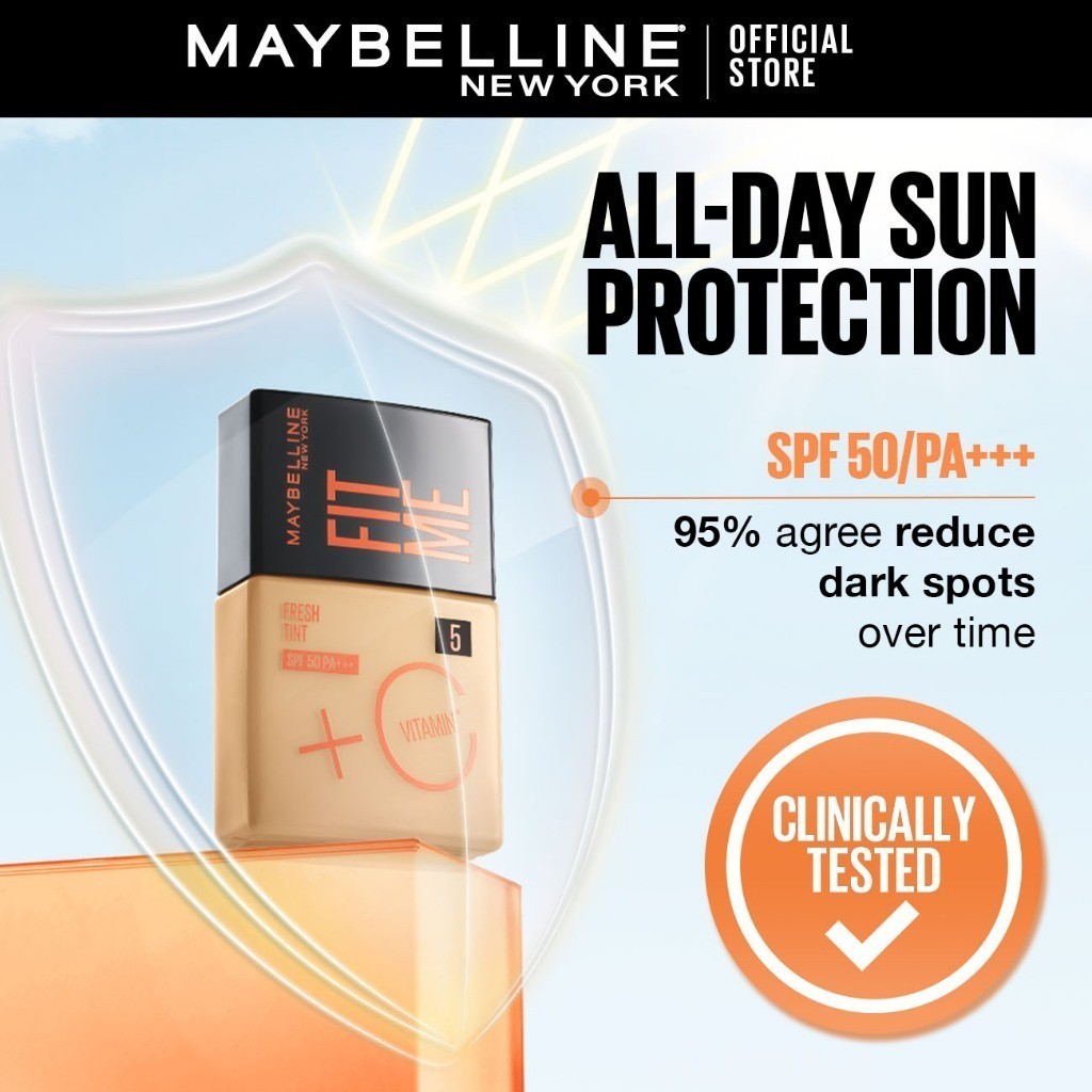 Maybelline Fit Me Fresh Tint - SPF50, Vitamin C, Sun Protection, Light-Natural Coverage, Skincare