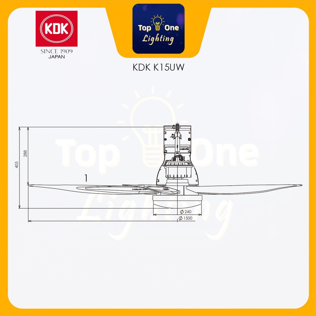 KDK K15UW / K15UW-QEY REMOTE CONTROL CEILING FAN WITH LED LIGHTING [SHORT PIPE 245MM / LONG PIPE 323MM] (150cm/ 60")