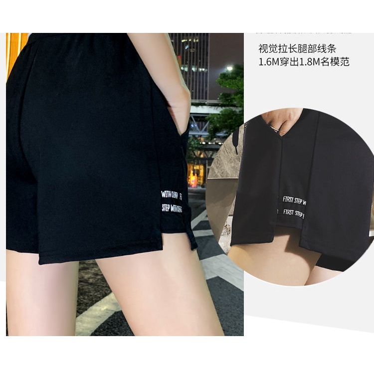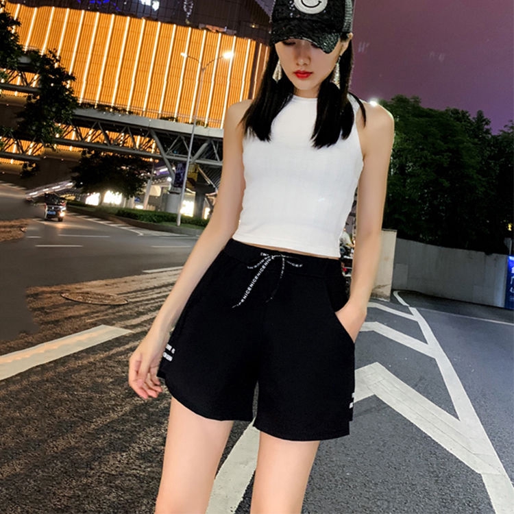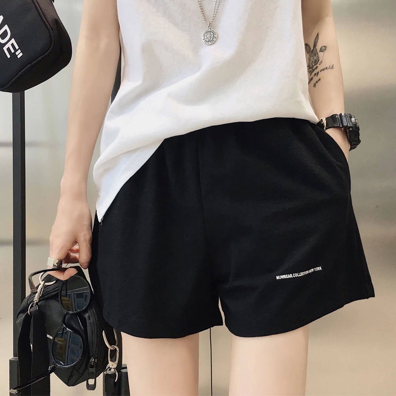 运动短裤女夏ins潮2020韩版高腰薄款韩版阔腿跑步热裤休闲三分裤 Elastic Waist Loose Soft Cotton Casual Short