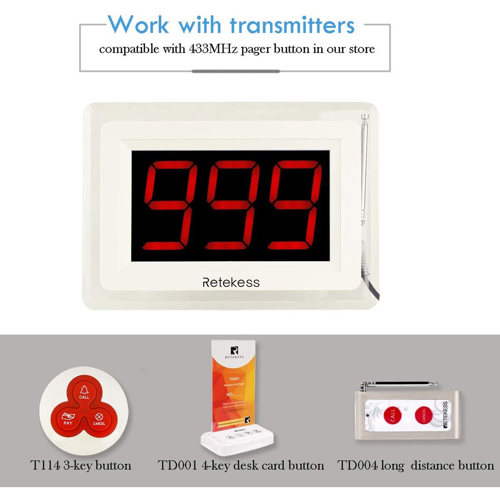 Retekess T114 Wireless Pager Calling System for Restaurant Waiter with Voice Report Host Display+10 Table Bell Food Court Coffee Shop