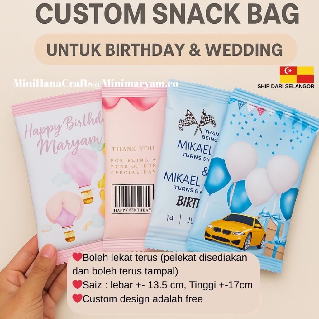 custom chips bag goodies bag doorgift beg doorgift beg goodies gift bag goodies birthday beg goodies kahwin Aqiqah