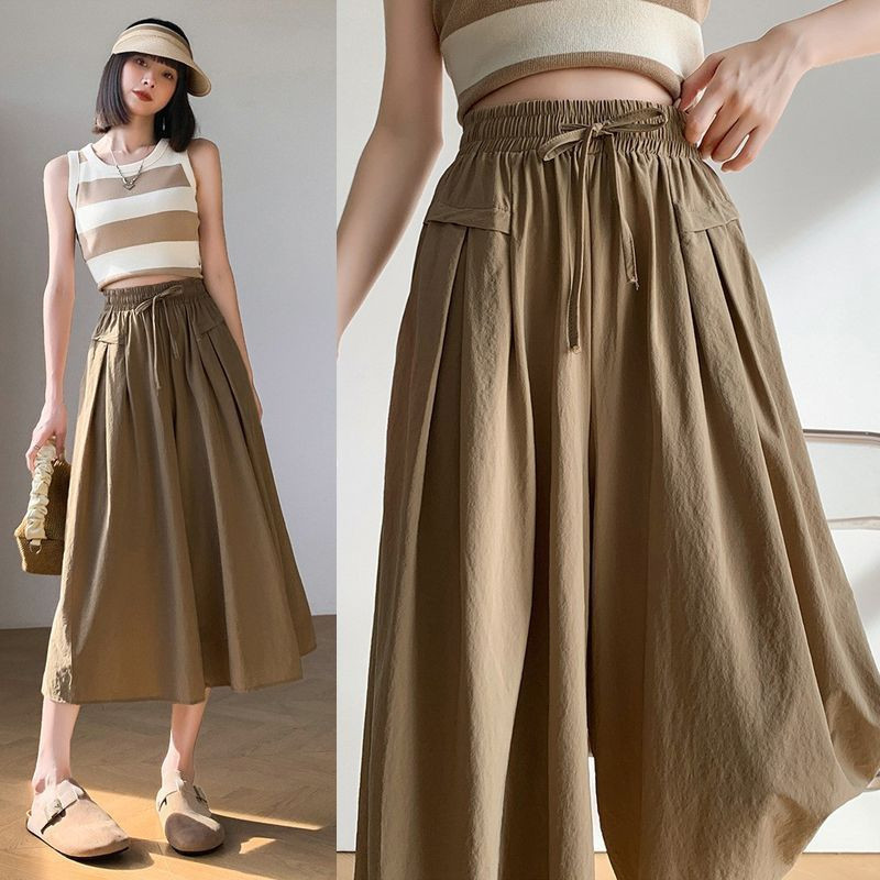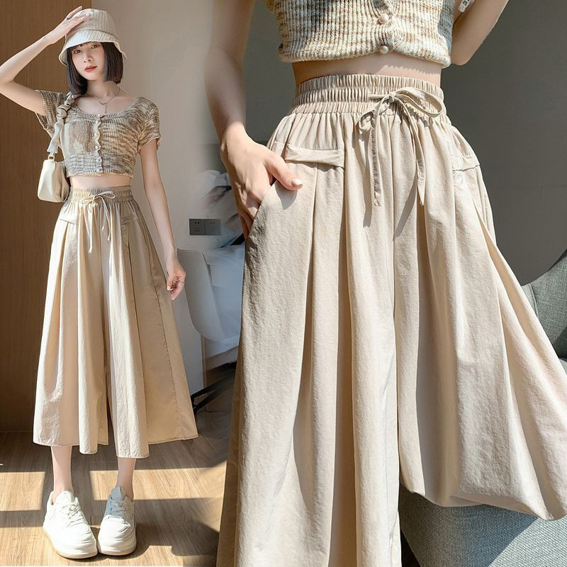 【Women Skorts】(50-150kg) Oversize Elastic Waist High Waist Plain Plus Size 3/4 Length Wide leg Pant