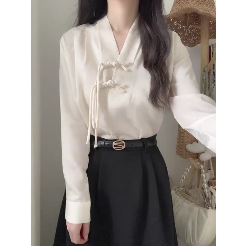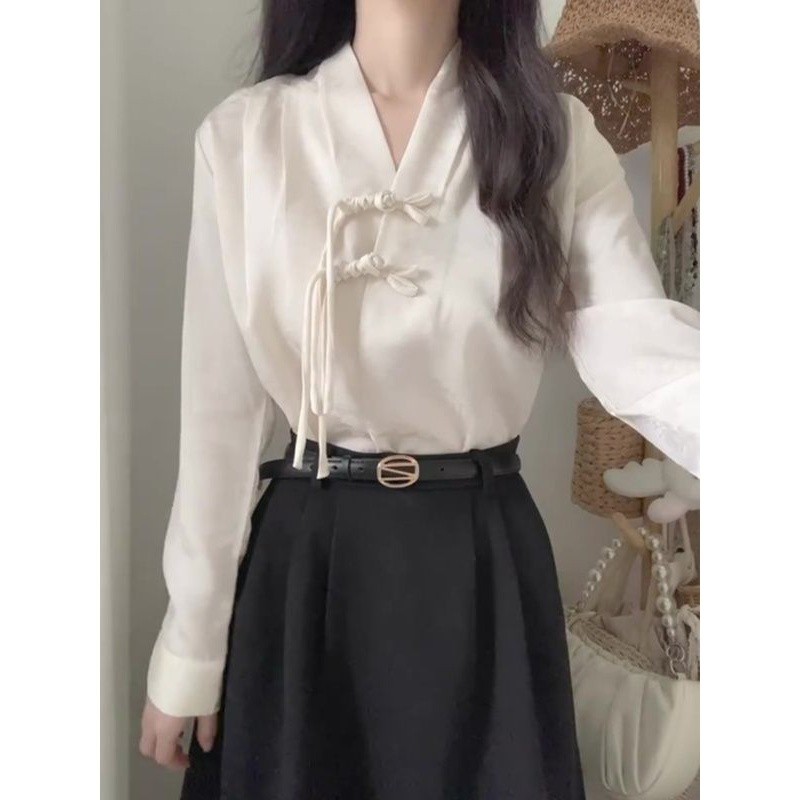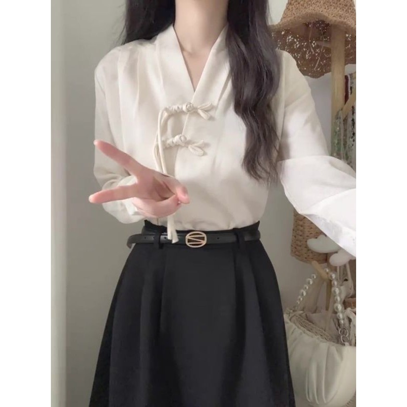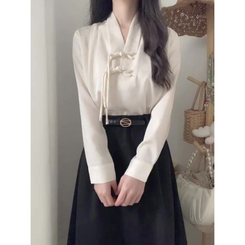 【Ready Stock】新中式国风马面裙上衣搭配女装2024年早春设计感别致漂亮内搭衬衫blouse shirt