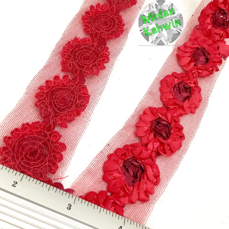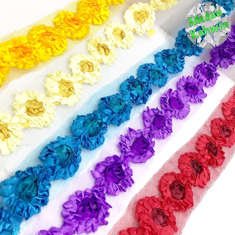 #RL3000 (meter) 1.25” Lace Bunga Bulat Lace Hantaran Round Flower Border Lace 32mm @ 5 pilihan