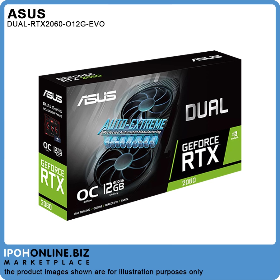 Asus Dual Series NVIDIA GeForce RTX 2060 OC Edition 12GB GDDR6 HDMI DVI DP Graphic Card - DUAL-RTX2060-O12G-EVO