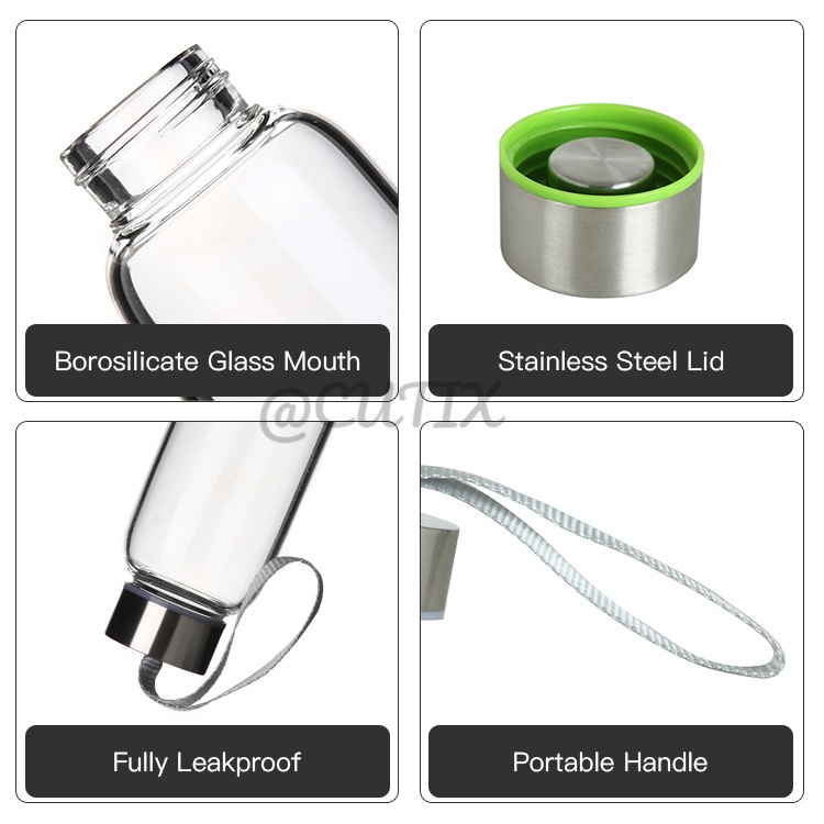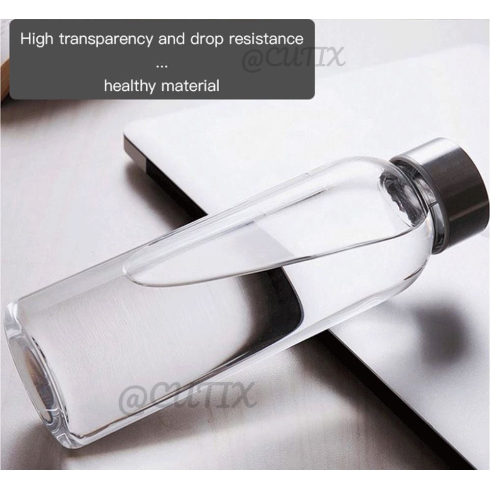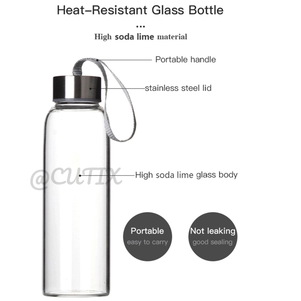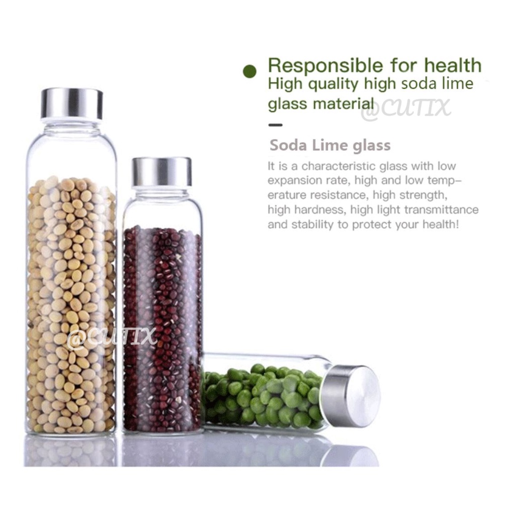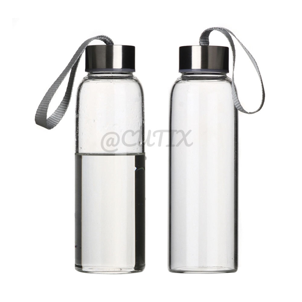 300ml Glass Water Bottle Drinking Jar Stainless Steel Lid Portable Tumbler BPA Free Air Botol 玻璃水瓶