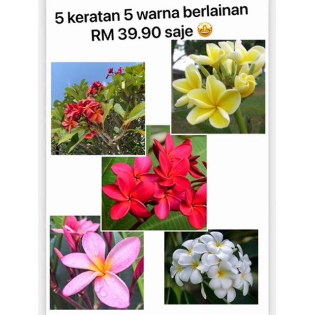 5 Pokok bunga kemboja keratan 🌱 鸡蛋花Dark Red+white+pink+yellow+hybrid orange red plumeria cuttings without root Fresh cut
