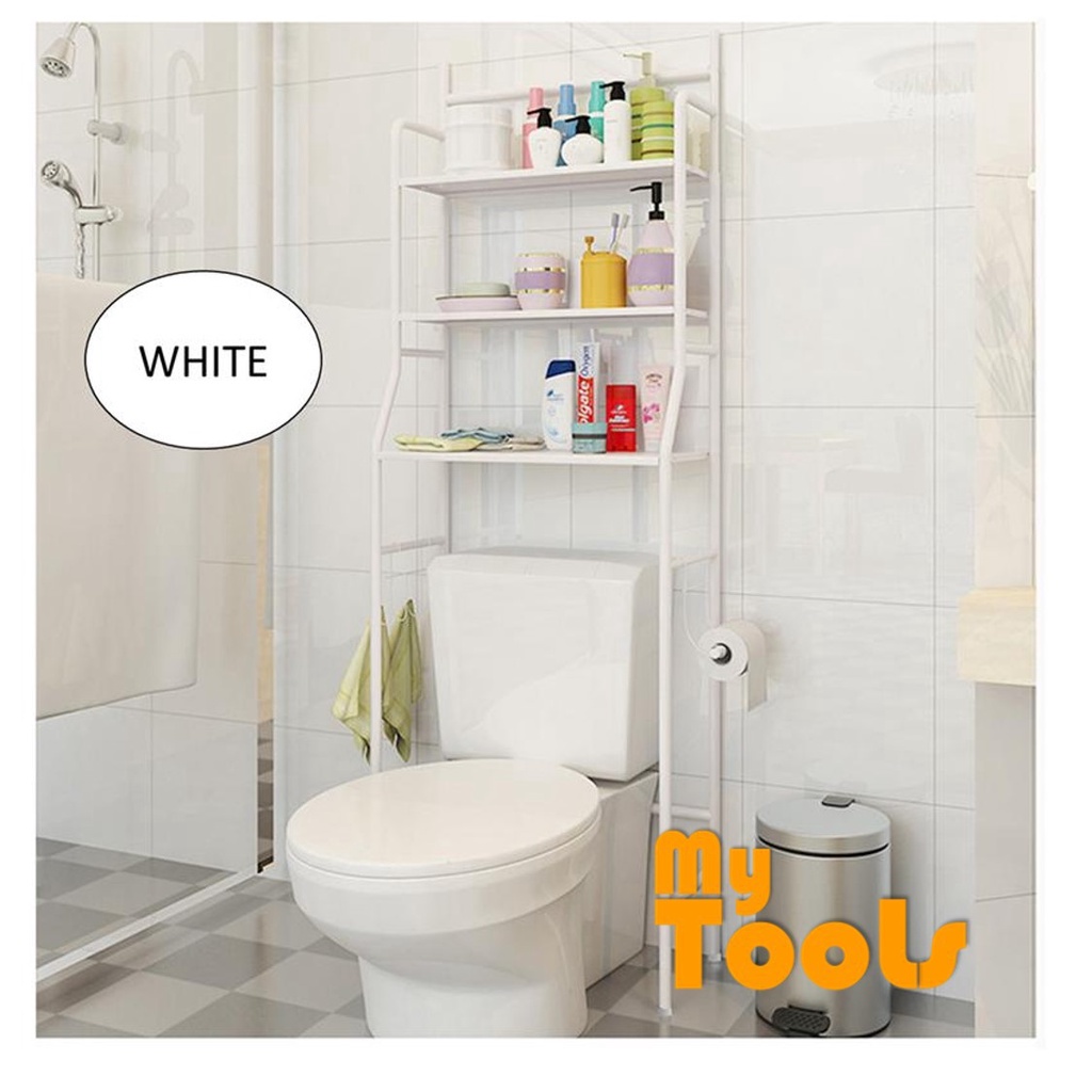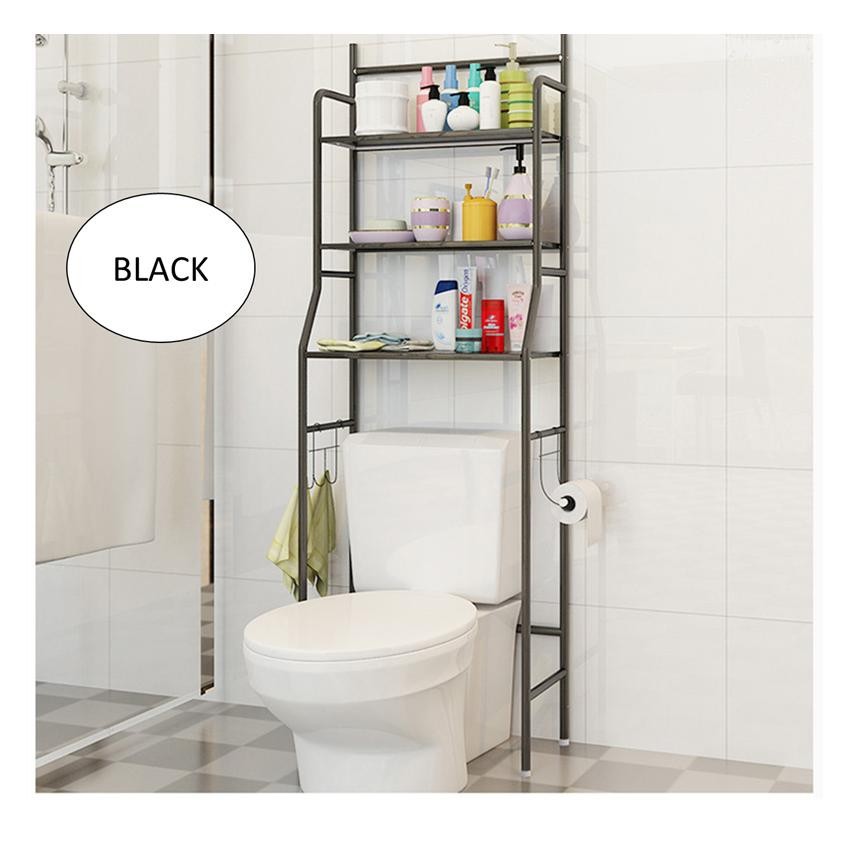 Rak Letak Barang Bilik Air Rak Bertingkat 3 Tiers Bathroom and Toilet Organizer Shelves Rack White Black Stainless Steel