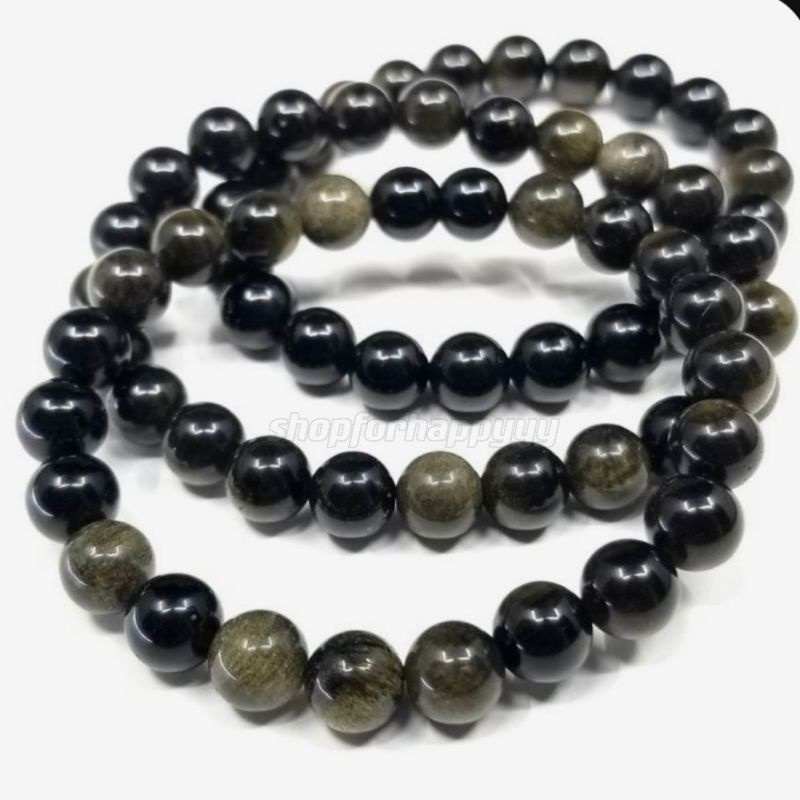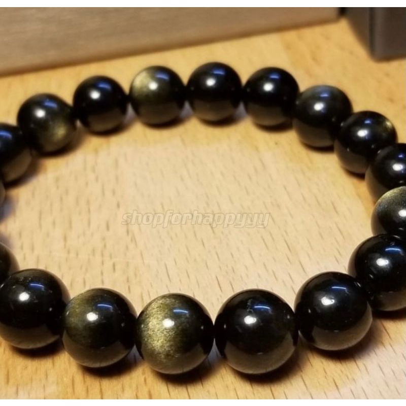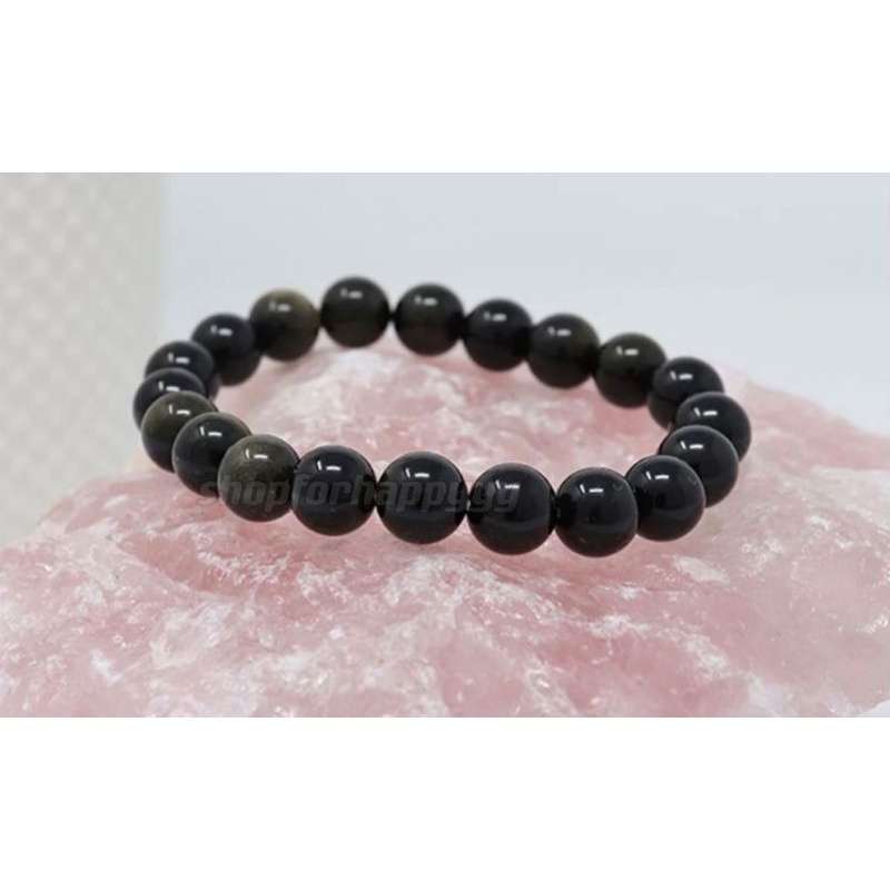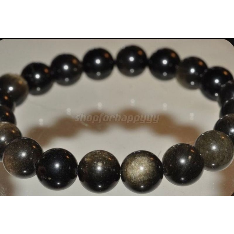 [Ready Stock in Malaysia🇲🇾] 8mm/12mm Premium Grade Natural Crystal Golden Sheen Obsidian Bracelet birthday gift