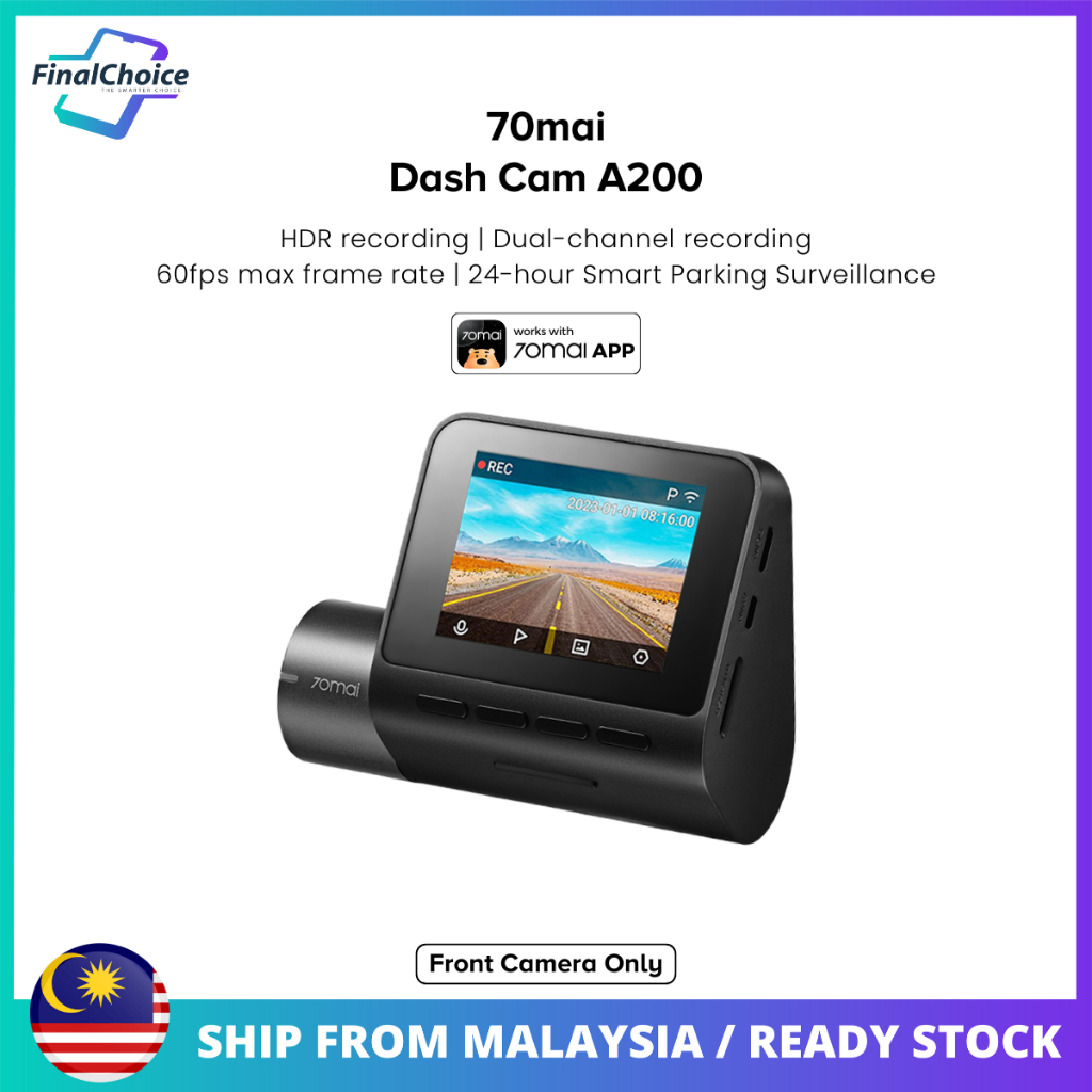 70mai Dash Cam A200 1080P FHD HDR Wide Angle Dual Channel Recording App Control Clear Night Vision