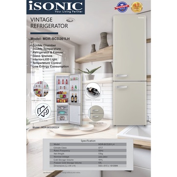 iSONIC Double Door Vintage Refrigerator MDR-BCD261LH (Red/White Cream/Light Green/Light Pink)