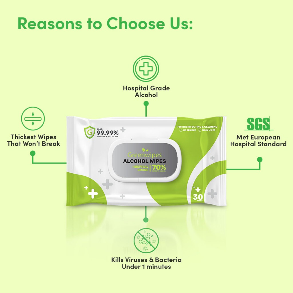 Greenwipes Alcohol Disinfectant Wipes - Hospital Grade Wipes Alcohol Wipes
