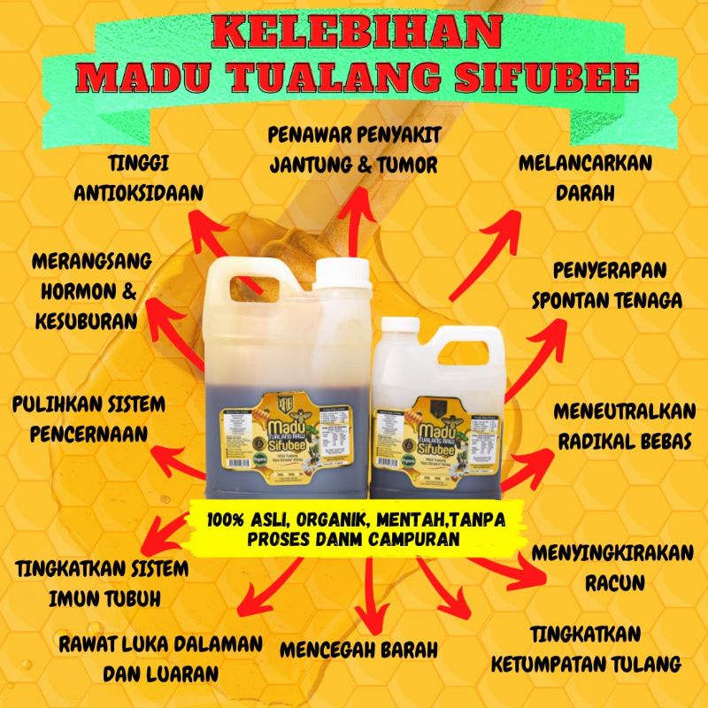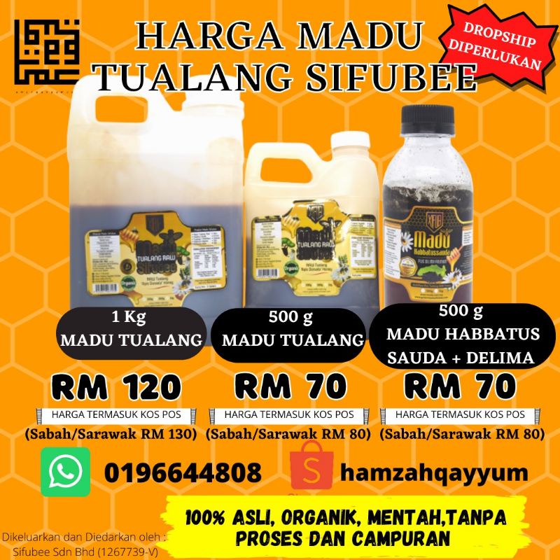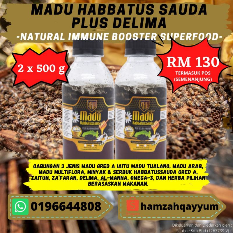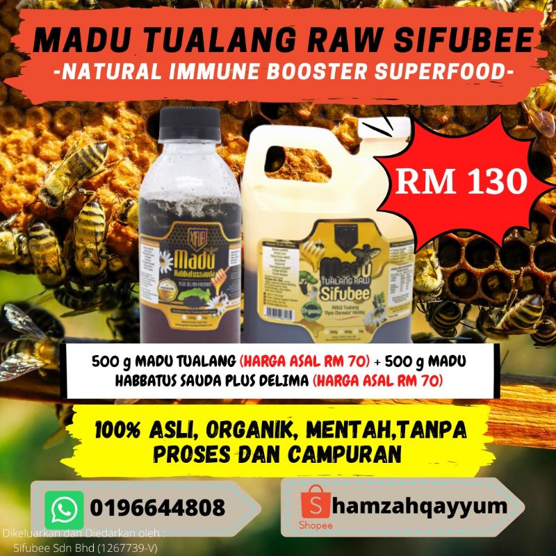 KOMBO MADU TUALANG RAW SIFUBEE (500g) + MADU HABBATUSSAUDA PLUS DELIMA (500g)