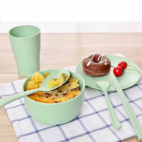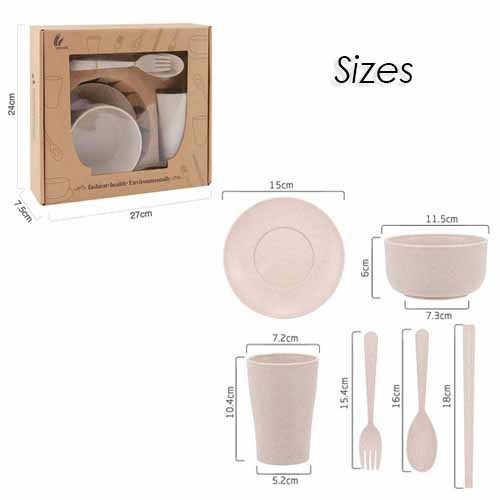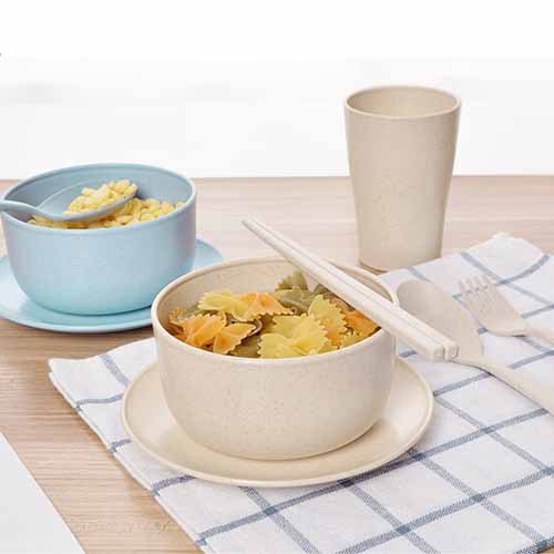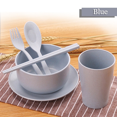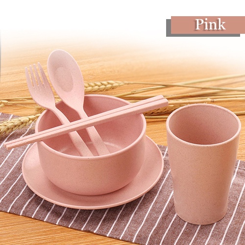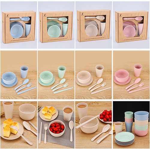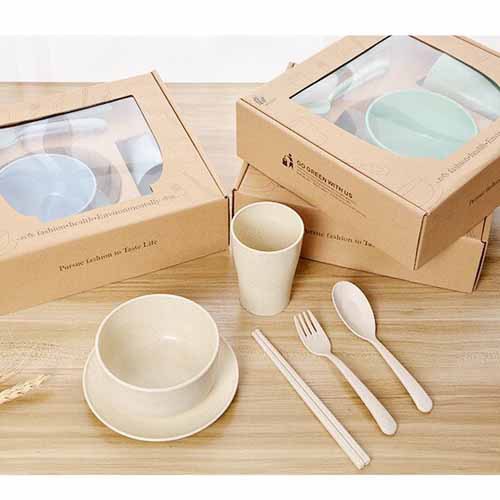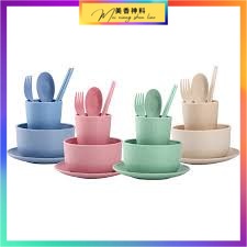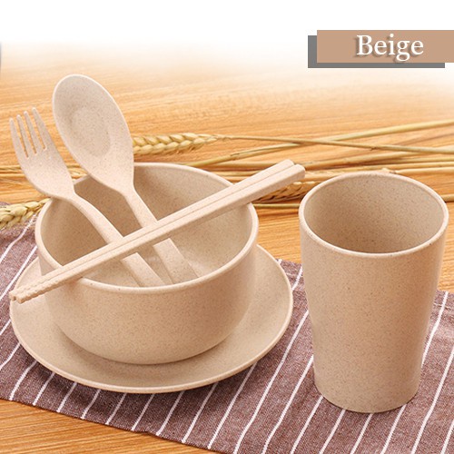 Ready Stock 6 in 1 set (spoon + fork + bowl + cup + plate + chopsticks) Wheat gift wedding safe home 6pcs - 6 in 1 套装餐具