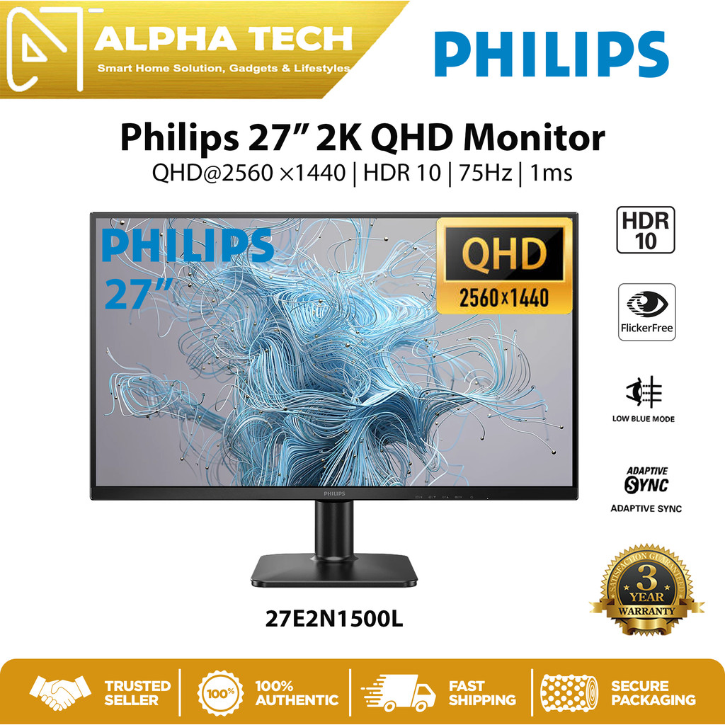 PHILIPS 27’’ 2K Monitor 27E2N1500L - QHD | IPS | HDR 10 | 75Hz | 1ms | Flicker Free | Adaptive-Sync | 3 Years Warranty