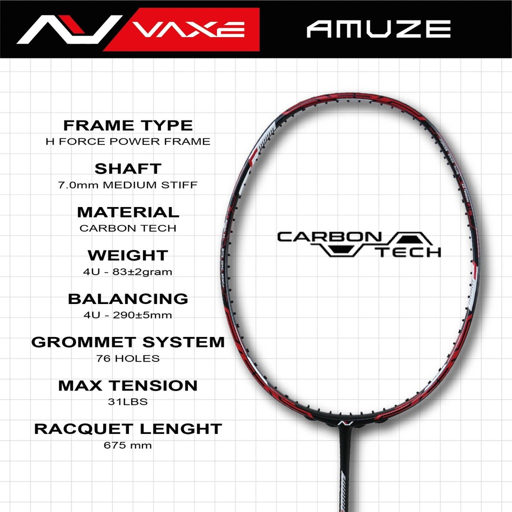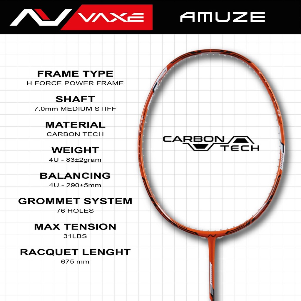 VAXE AMUZE Badminton Racket 4U 83gram 290mm Balan Point Heavy Head