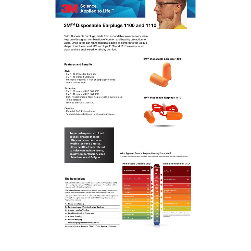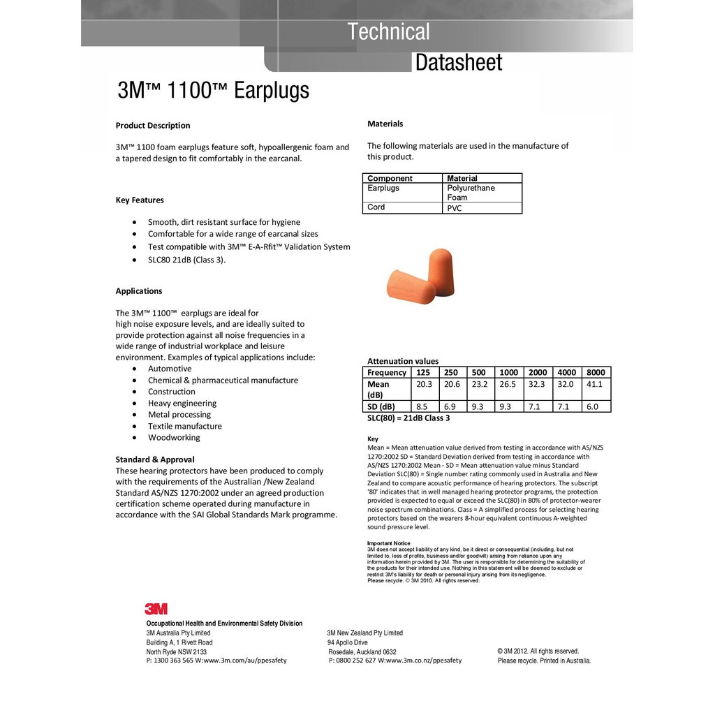 1100 CE Foam Earplugs - Orange (200 Pairs/Box) - UNCORDED