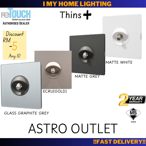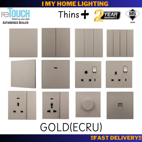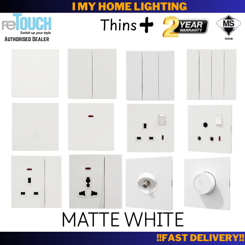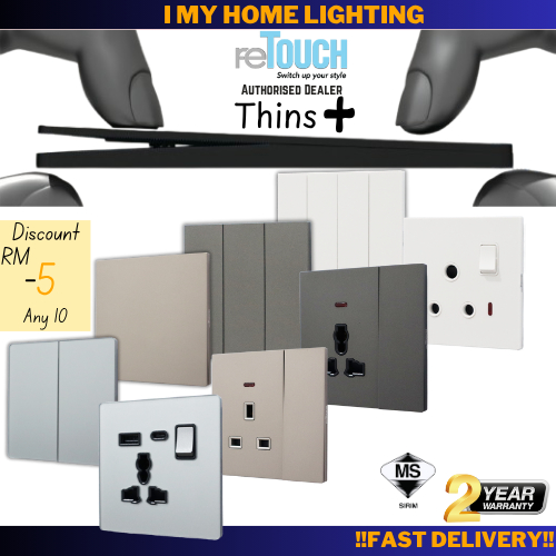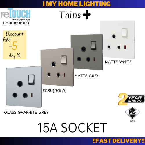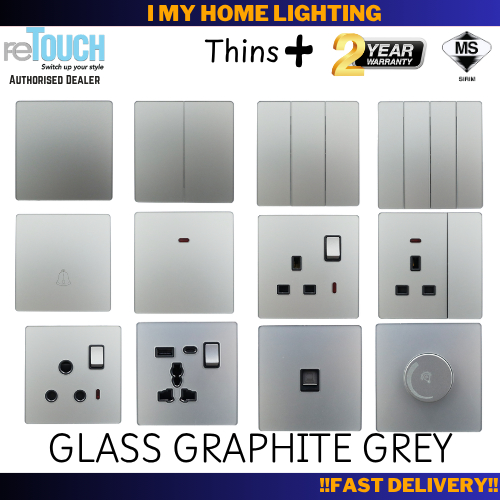 (SIRIM) Retouch Thins+ Glass Grey Black White Gold Slim Switch Socket 13A 20A 15A Plug Sius 开关插座
