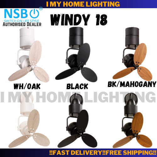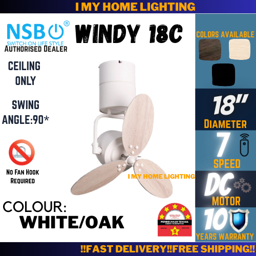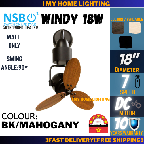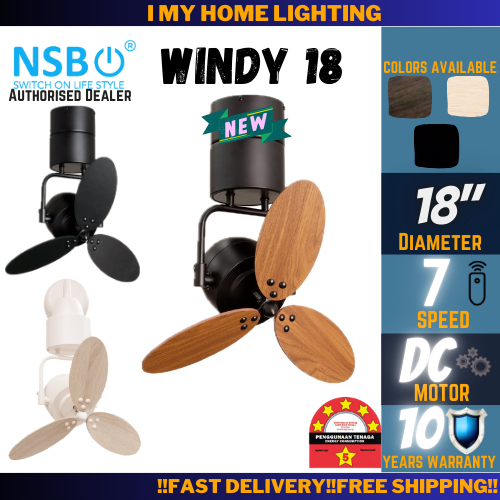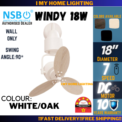 NSB Windy 18W 18C Small Mini Corner Ceiling Wall Fan Remote 3 Blade Wood Kipas Angin Siling 小型风扇