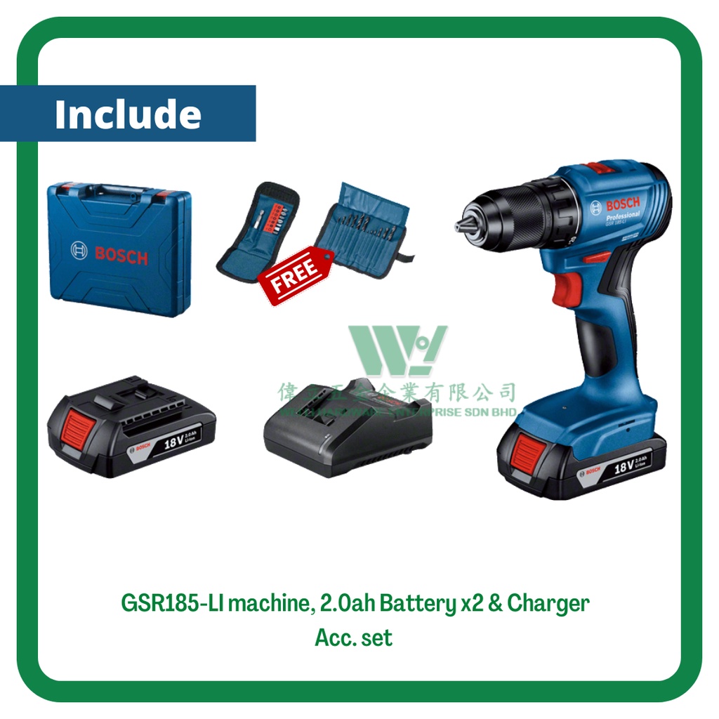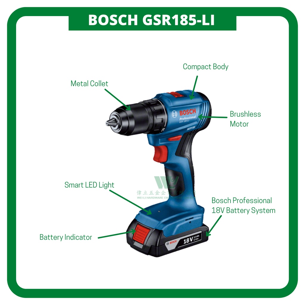 BOSCH GSR185-LI Cordless Drill 18V/ BOSCH Drill / Battery Drill BOSCH / Mesin Tebuk Lubang Battery GSR
