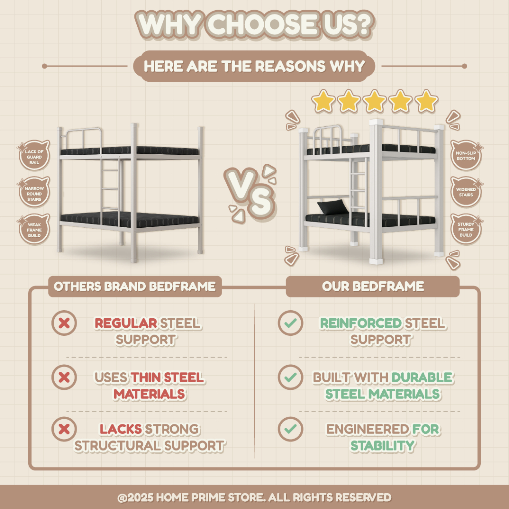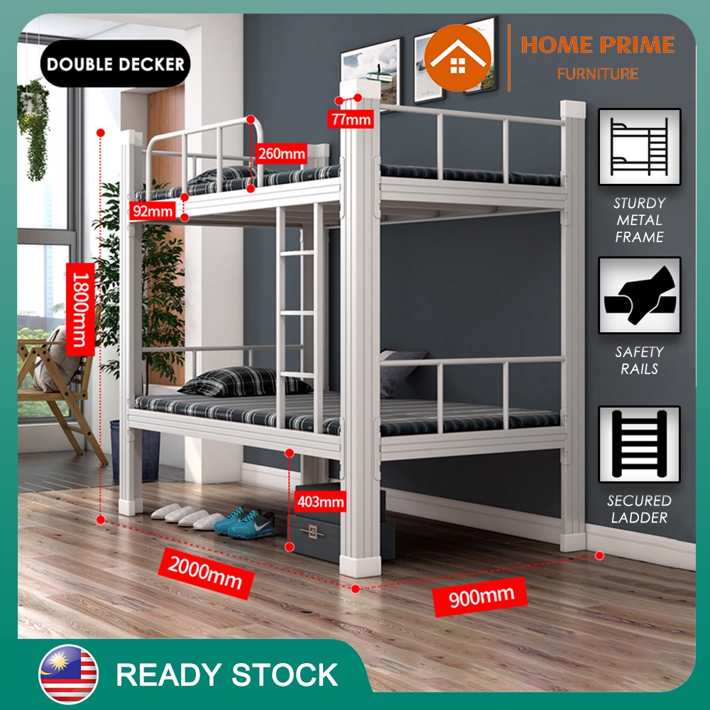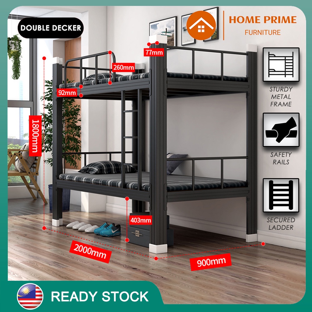 Rangka Katil Keluli Double Decker High Quality Heavy Duty Extra Thick Steel Besi Katil Tidur Dua Orang Multilevel HP051/