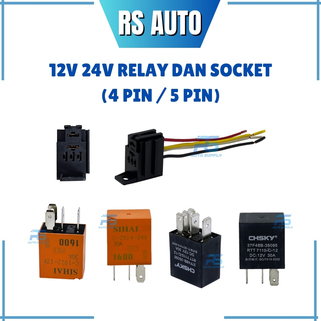 Mini Micro 12V 24V 4pin 5pin relay socket 30A for Automotive Lorry Car Waja Wira