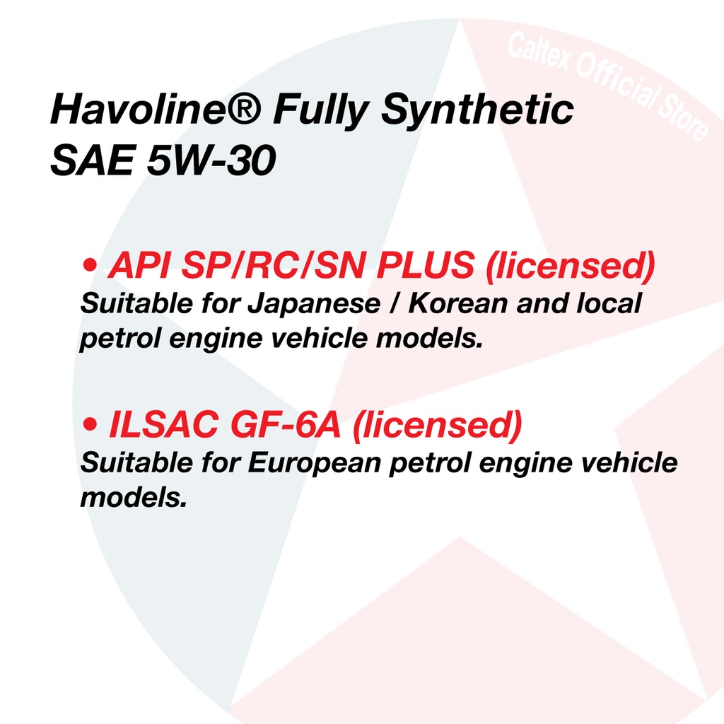 Caltex Havoline Fully Synthetic 5W30 API SP 4 Liters [FREE TNG STICK]