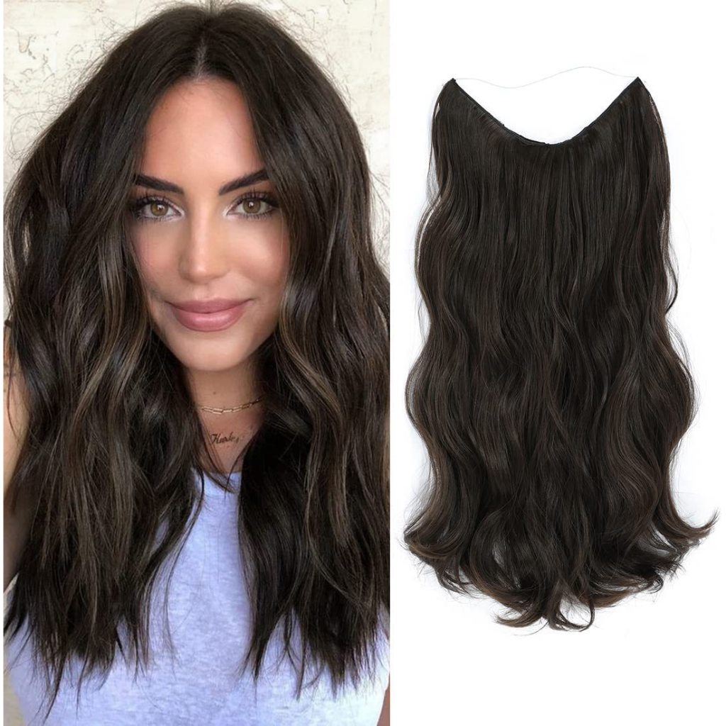 Synthetic 24inch Invisible Hair Wire Without No Clip Hair Extension Fishing Line Wig Wavy Hair Female False Hair Piece