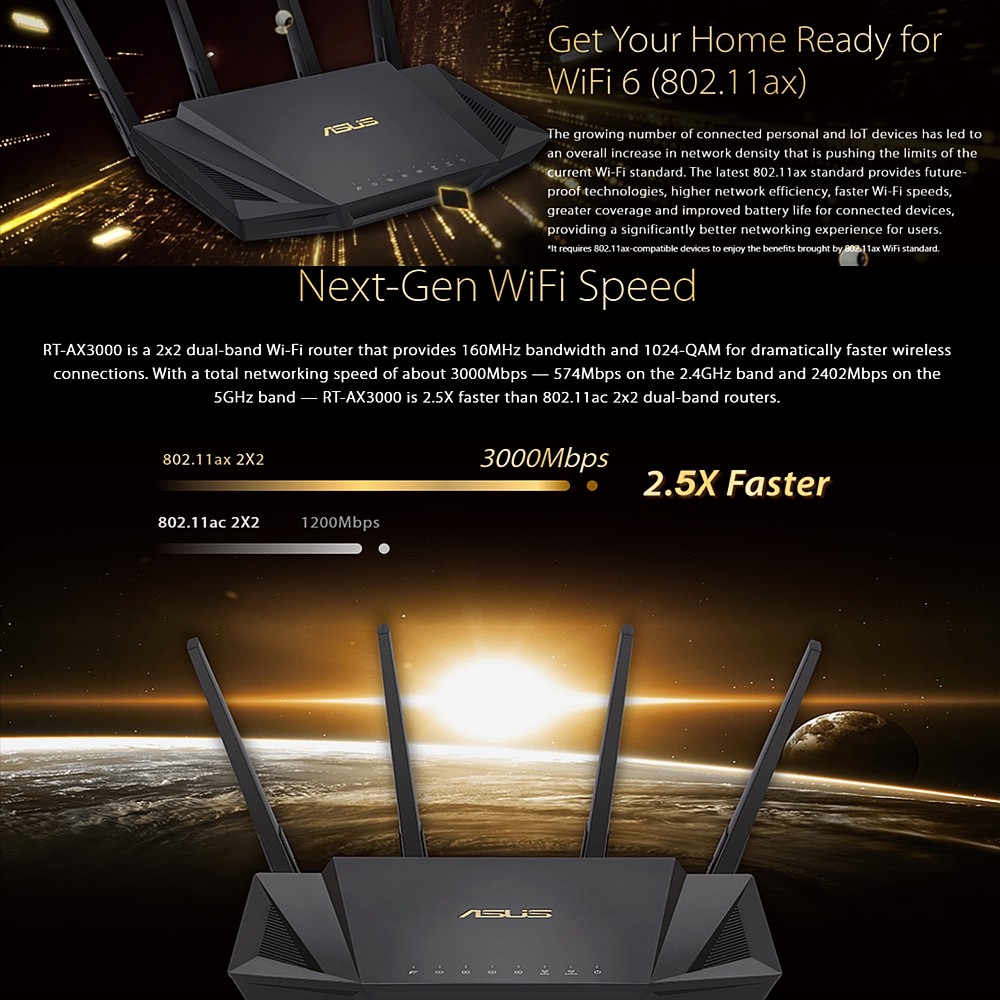 ASUS TUF AX3000 WiFi 6 Gaming Router Wireless AX Strong Signal Live Streaming